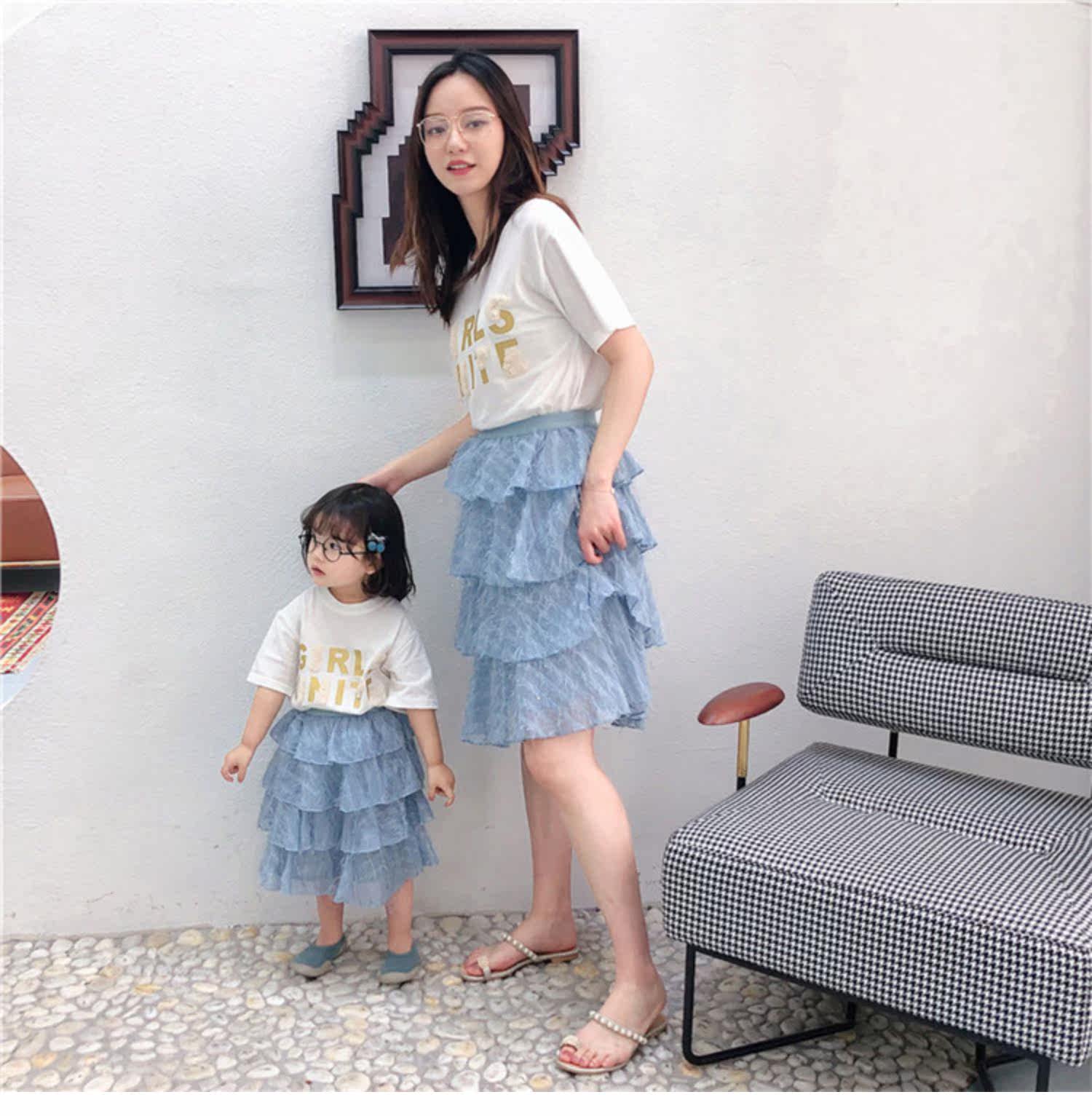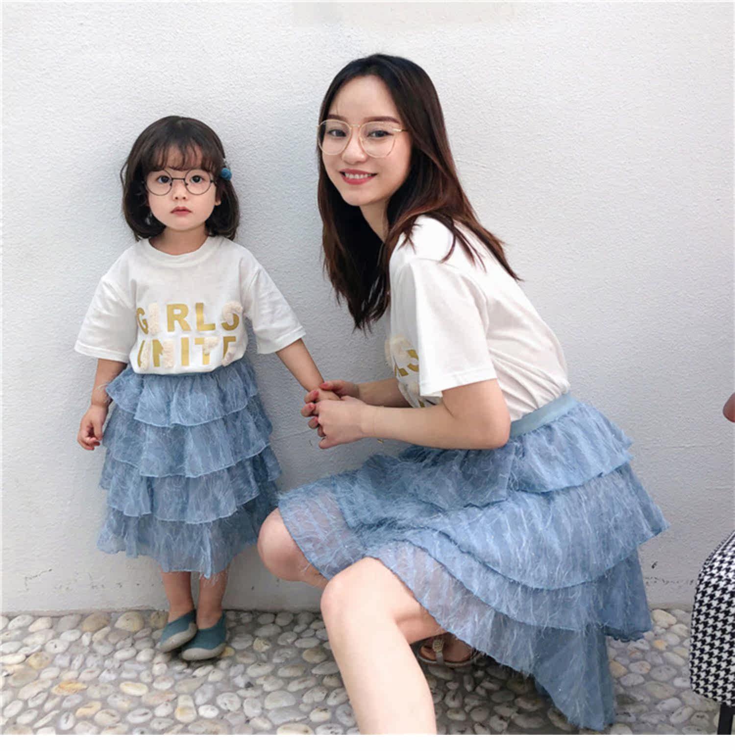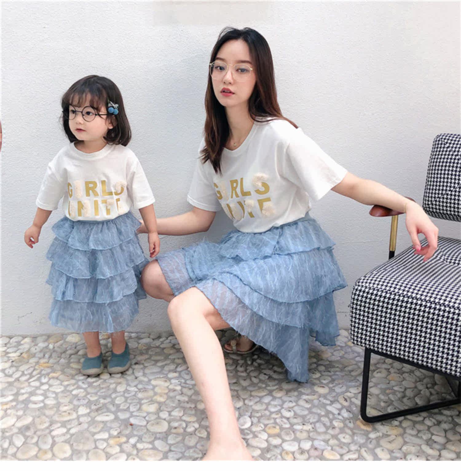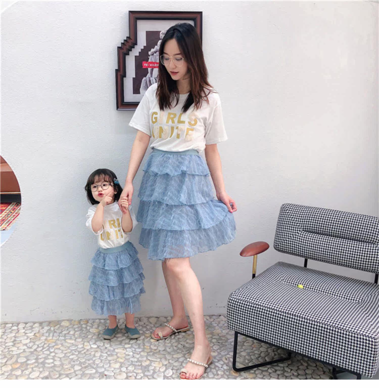 Розовые румяна, комплект, платье, юбка, летняя одежда, футболка с коротким рукавом, семейный стиль, популярно в интернете, в западном стиле, новая коллекция