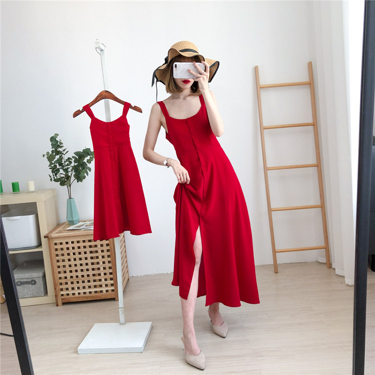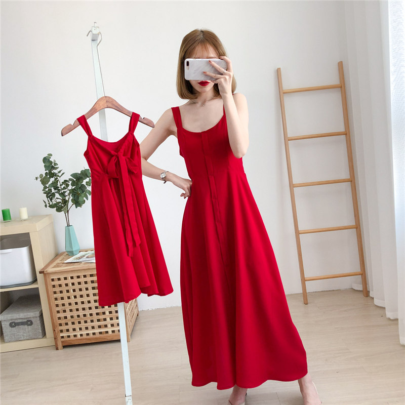Красная летняя пляжная длинная юбка, семейный стиль, 2020, в западном стиле, популярно в интернете
