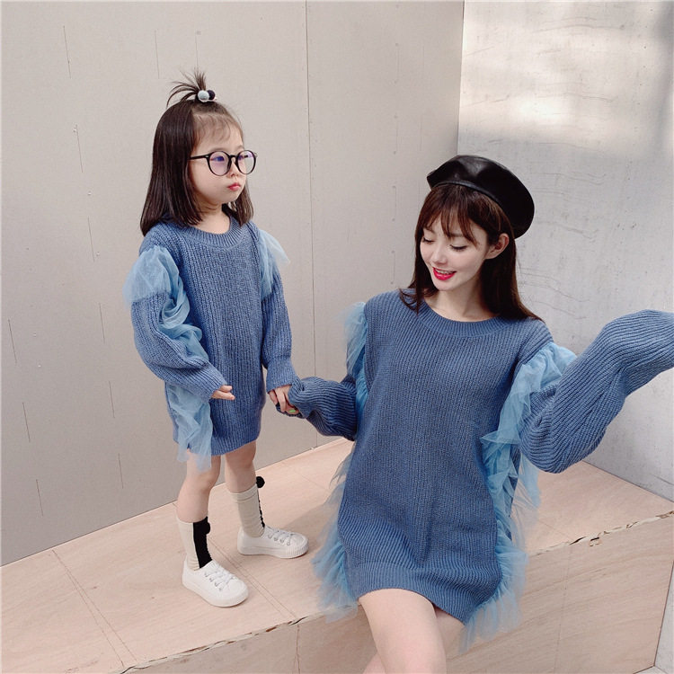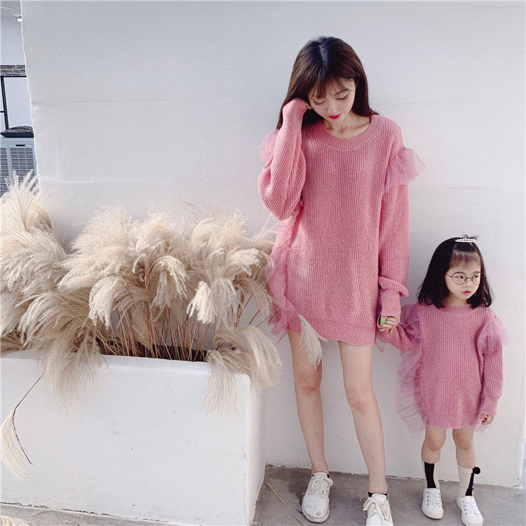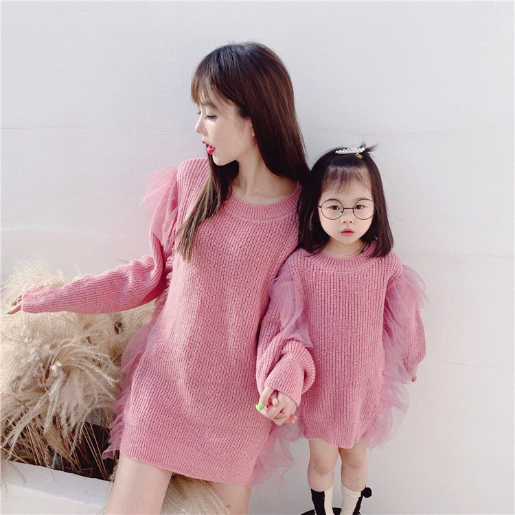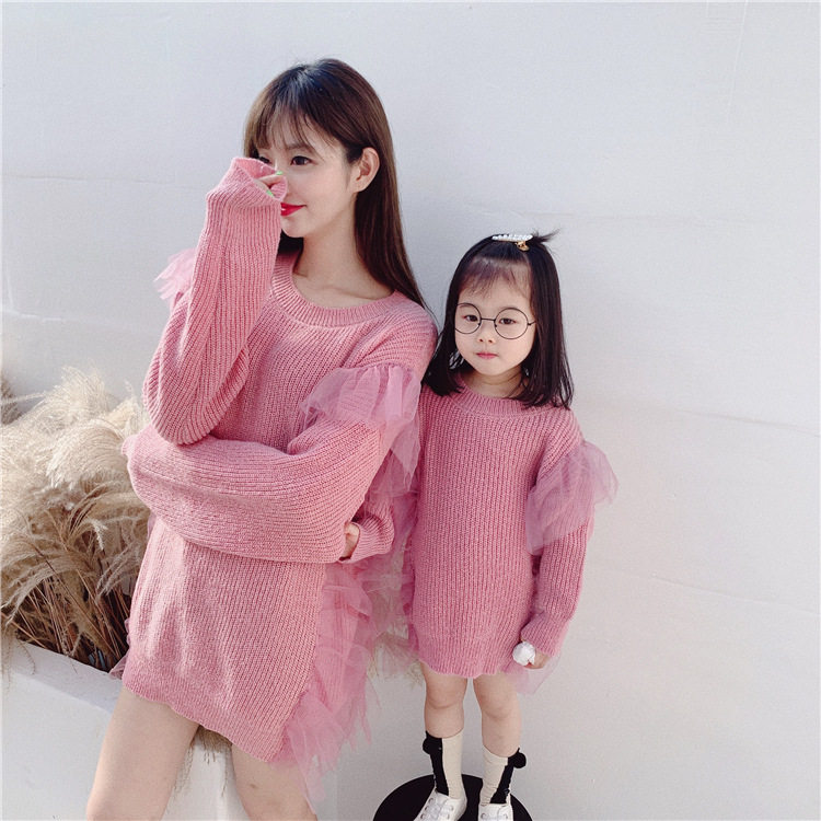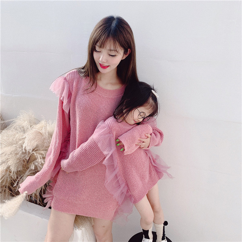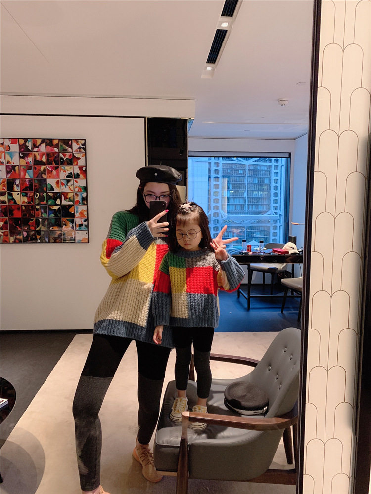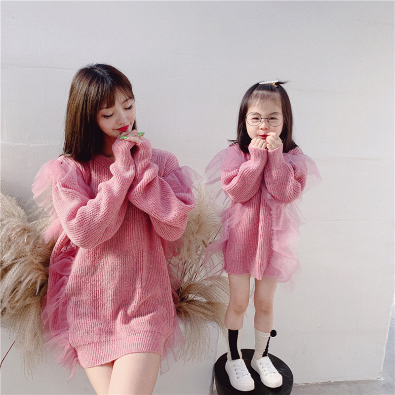 Осенний свитер, платье, куртка, семейный стиль, коллекция 2023, популярно в интернете, большой размер, в западном стиле