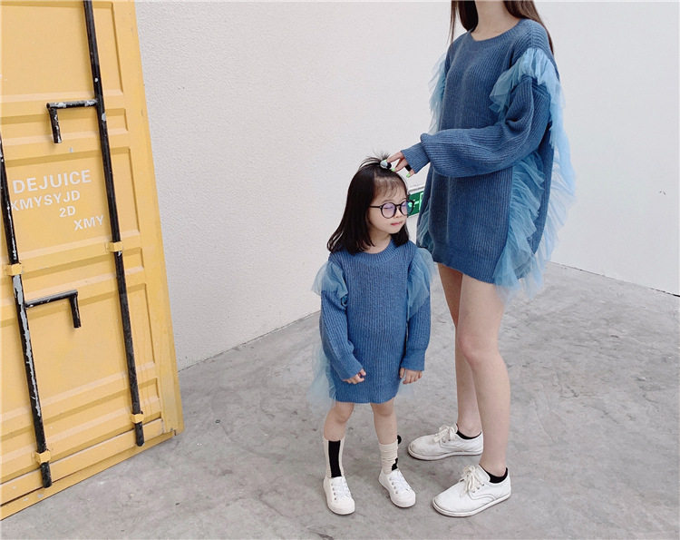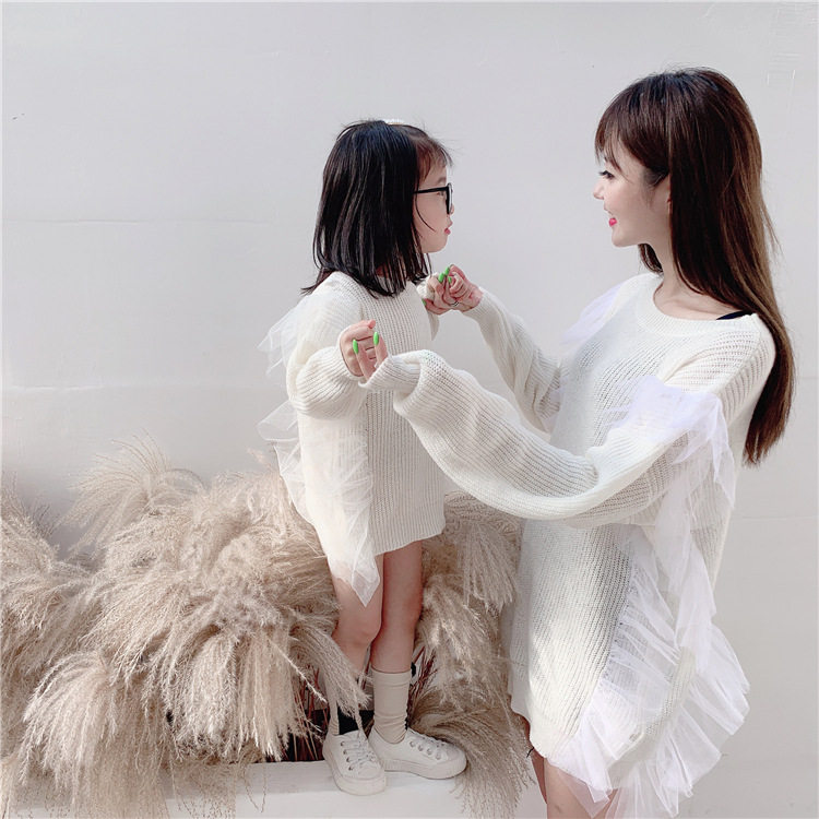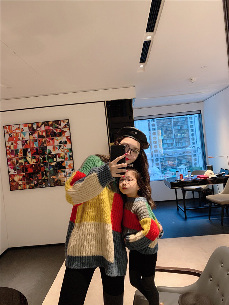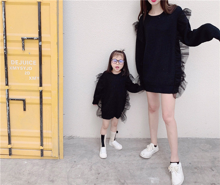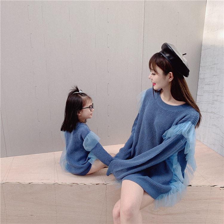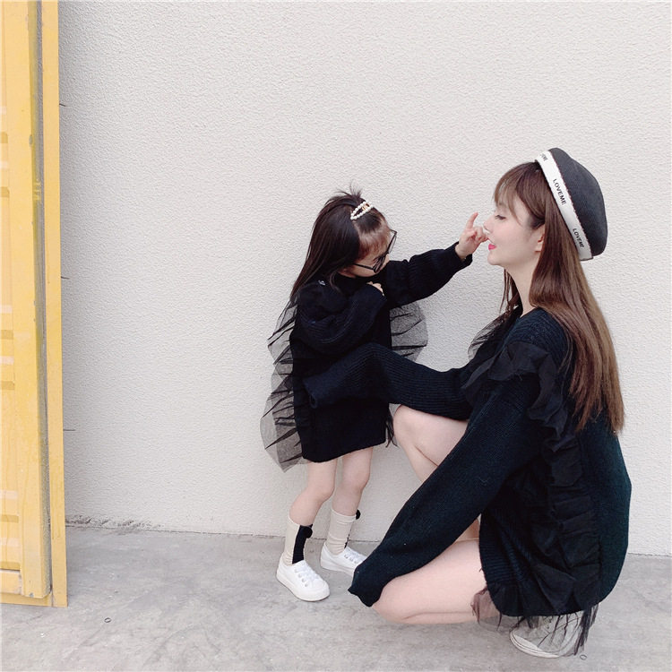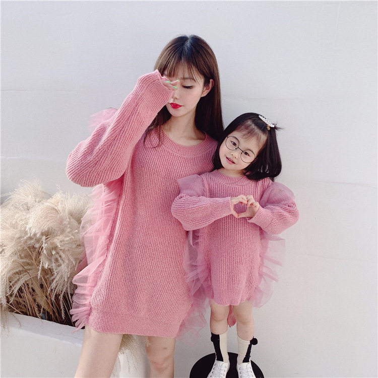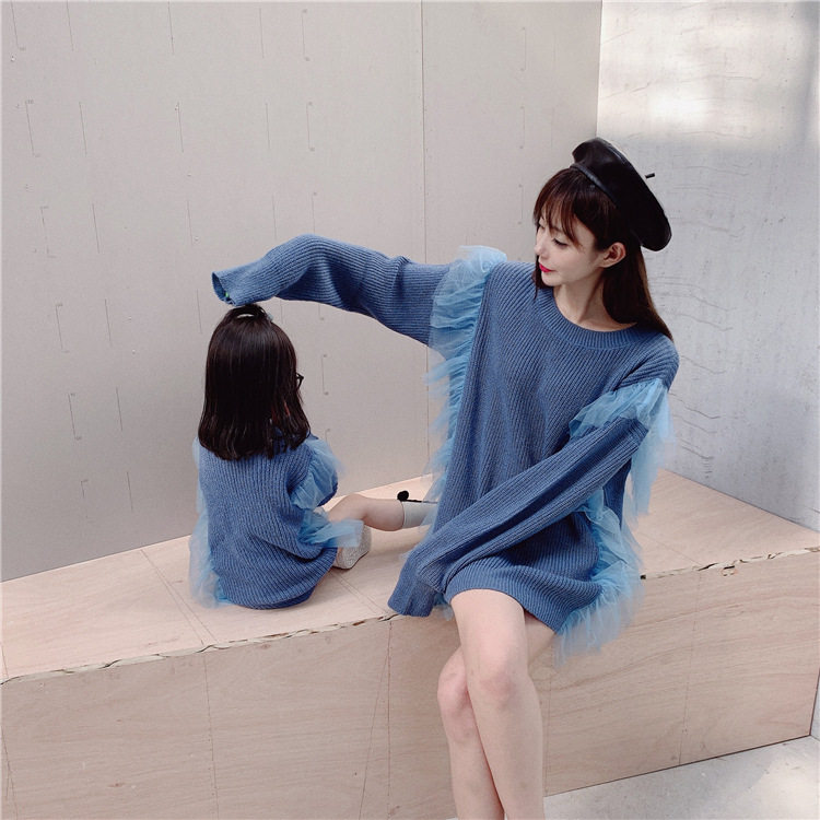 Осенний свитер, платье, куртка, семейный стиль, коллекция 2023, популярно в интернете, большой размер, в западном стиле