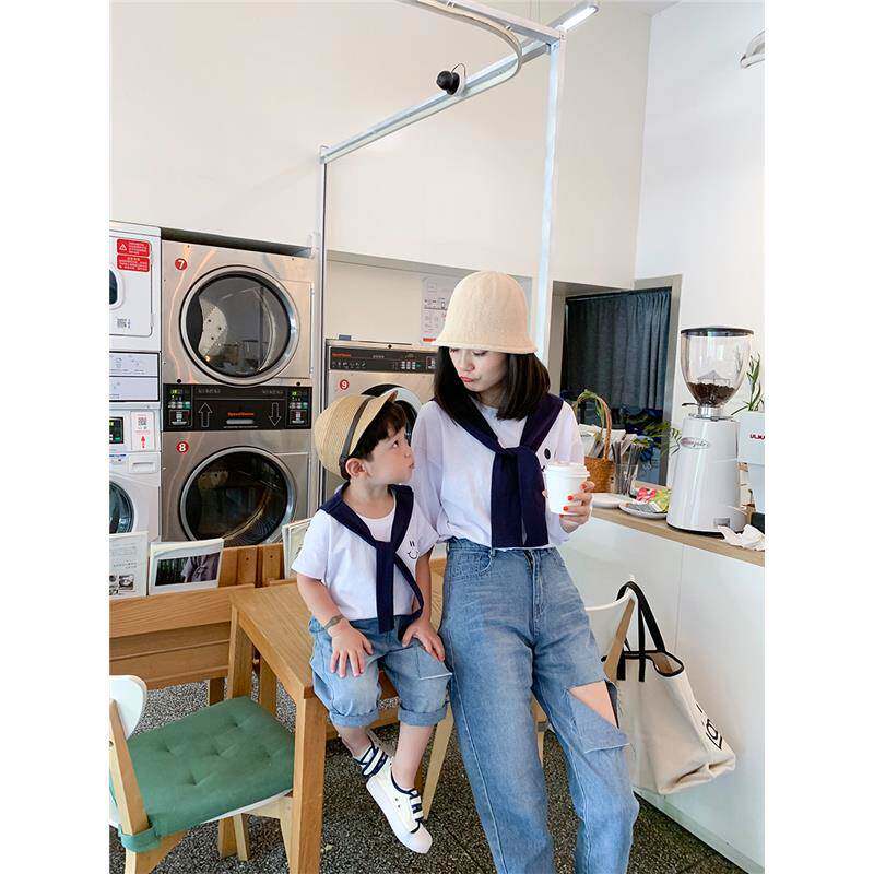 Различная инсталляция родительского ребенка 2024 Новое лето, семья из трех, четырех, мать и ребенок, мать и сын, мать, дочь, военно -морской шорт -шорт