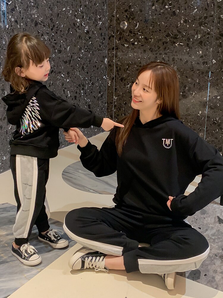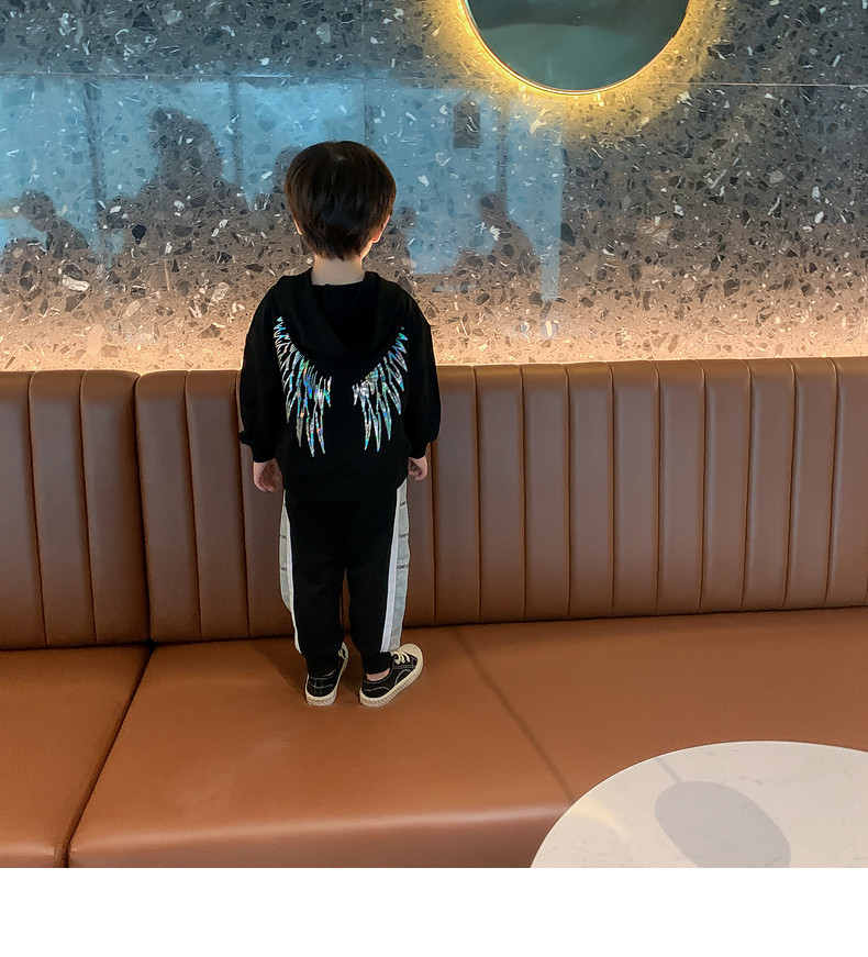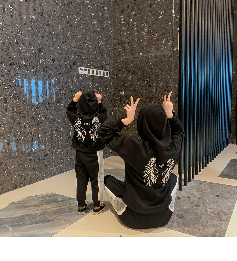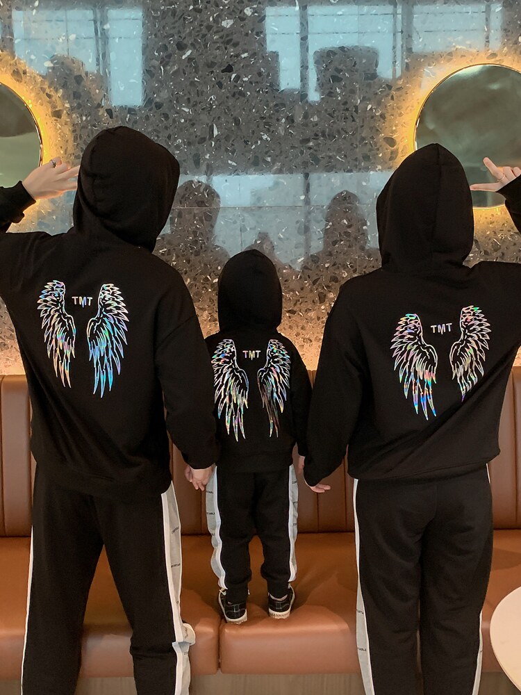 | Цвет: | Толстовка с крыльями и пайетками, черная, Боковые буквы черные брюки-черные, [Черный] Толстовка с крыльями и пайетками + [Черные] спортивные штаны с буквами по бокам |