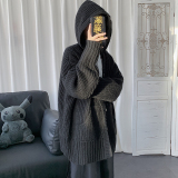 Брендовая шапка, кардиган, демисезонный свитер, демисезонная трендовая трикотажная толстовка с капюшоном, свободный крой, оверсайз, увеличенная толщина
