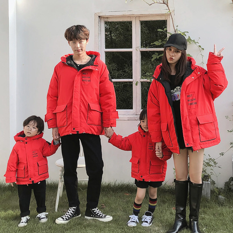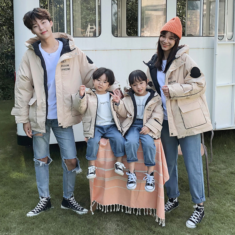 Детский пуховик, зимняя куртка, семейный стиль, в западном стиле