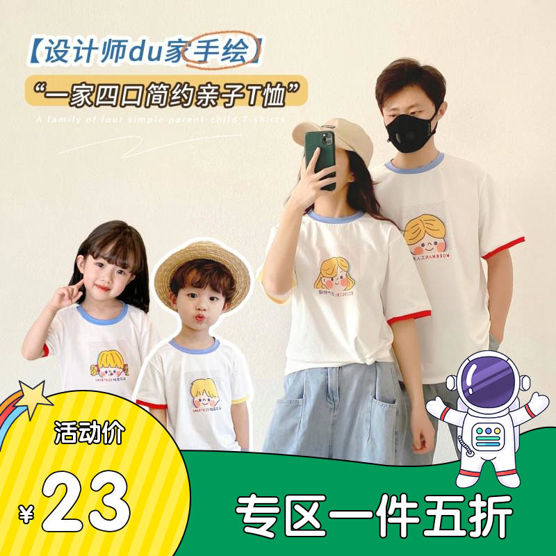 Мультяшная футболка с коротким рукавом, летняя одежда, реквизит для фотографии, ручная роспись, свободный крой, семейный стиль