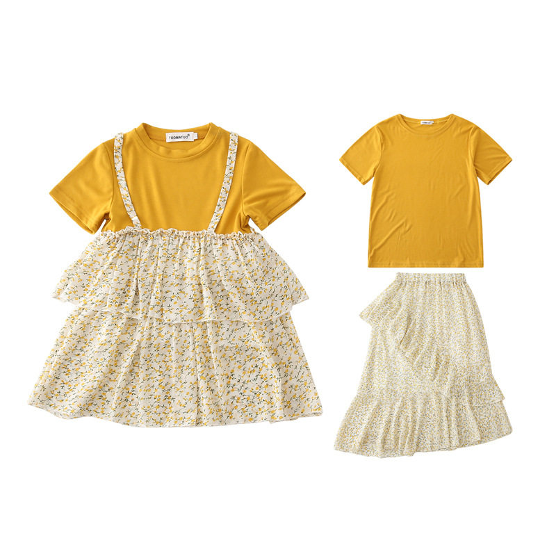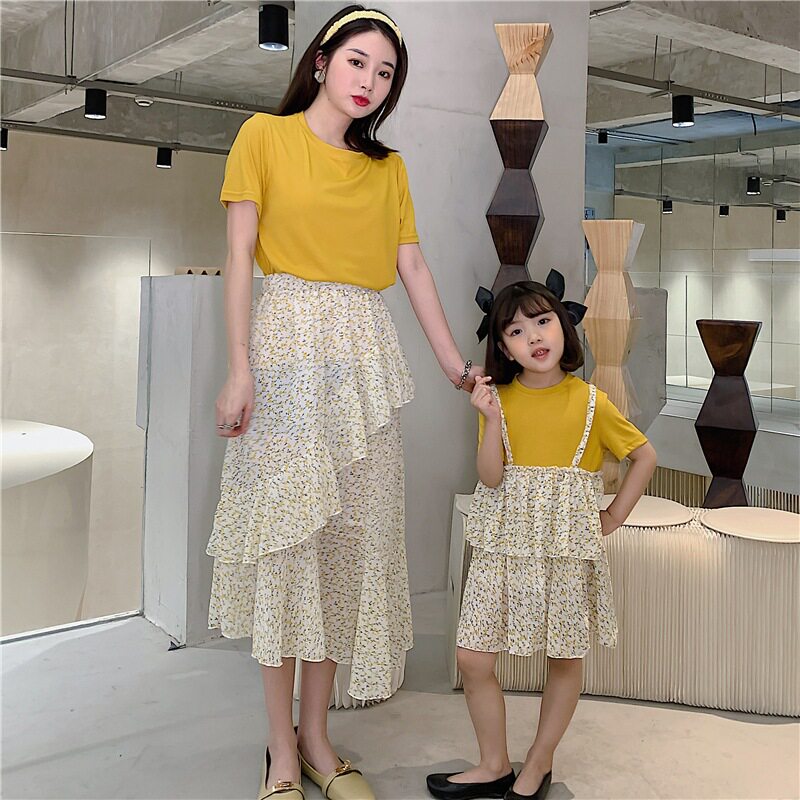 Элегантная летняя одежда, юбка, комплект, семейный стиль, сезон 2021, в западном стиле