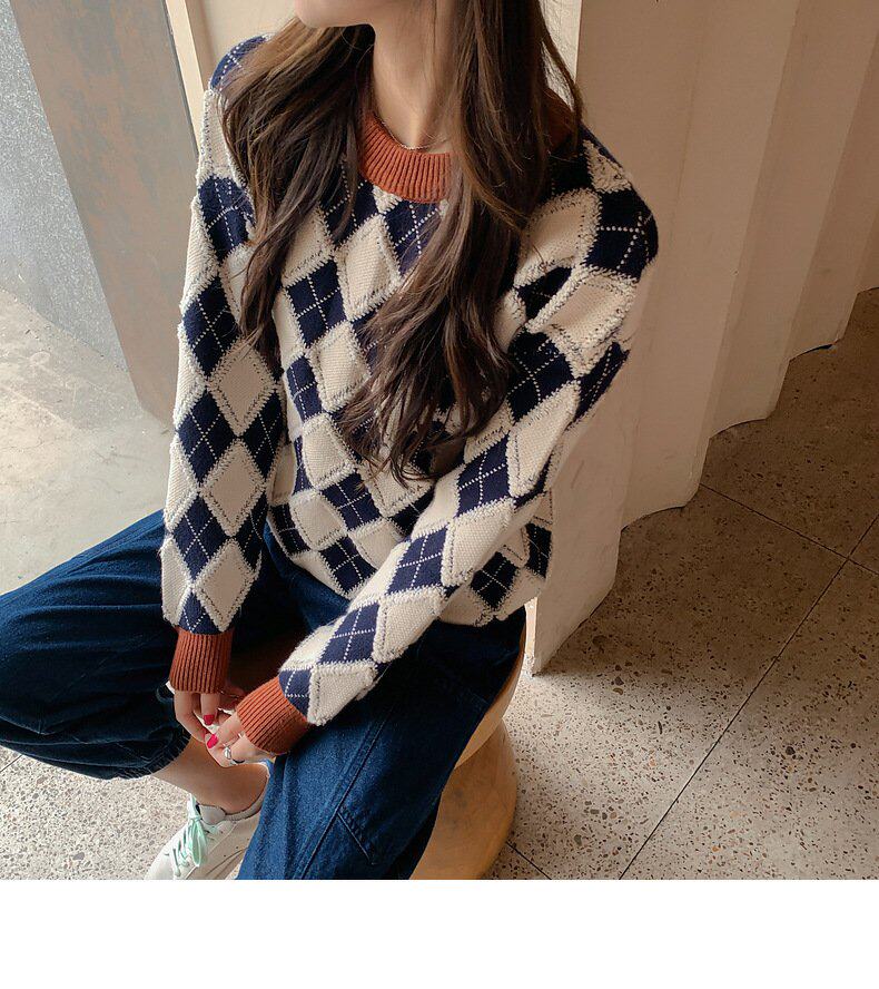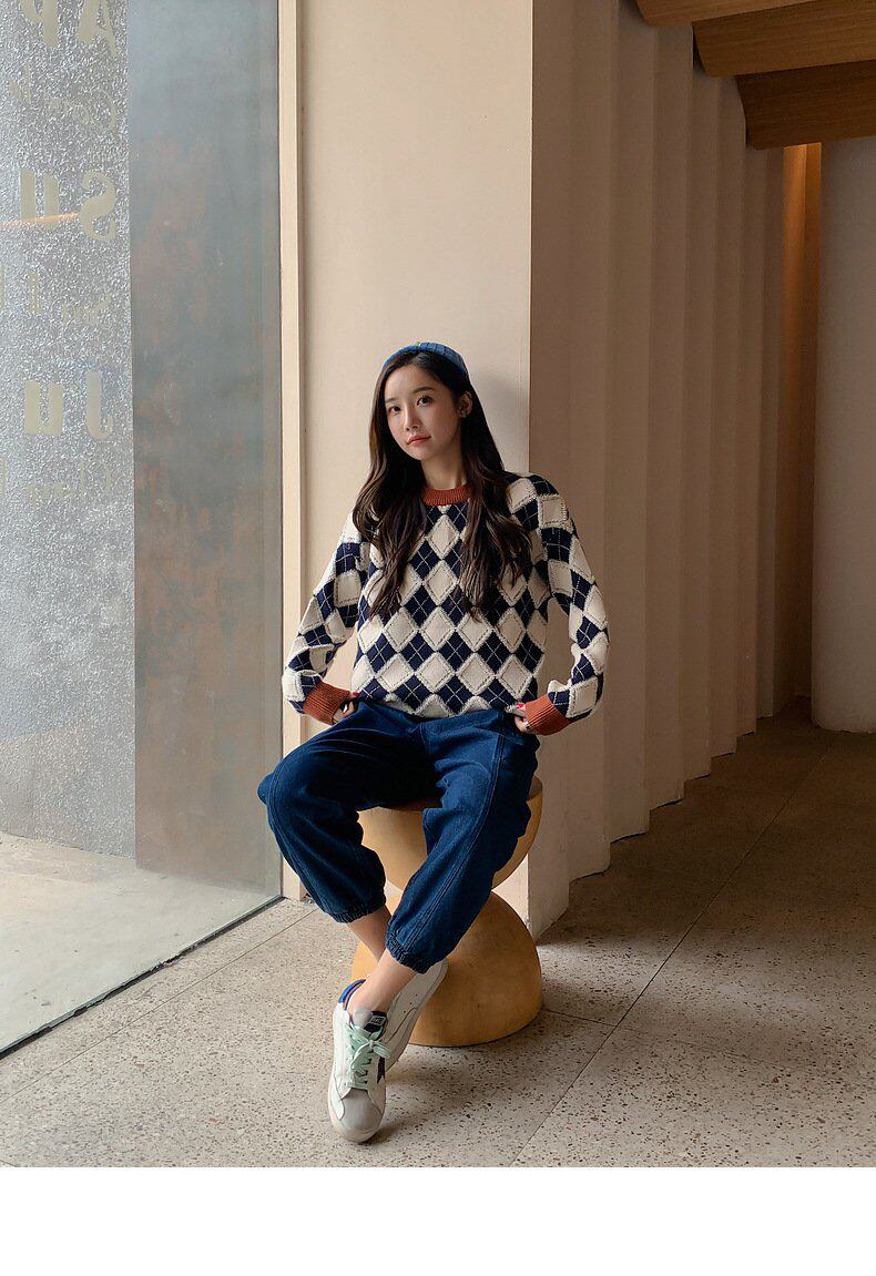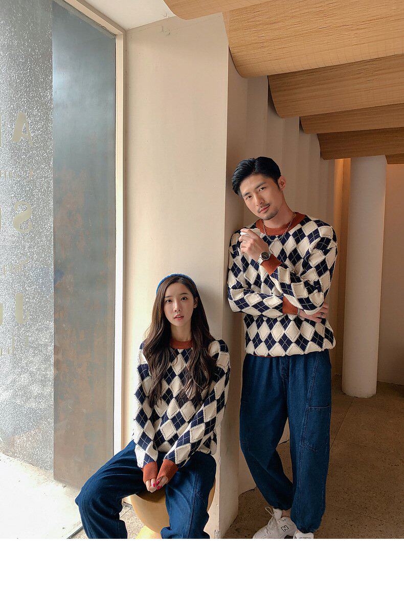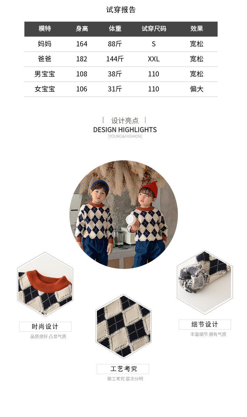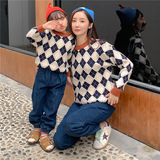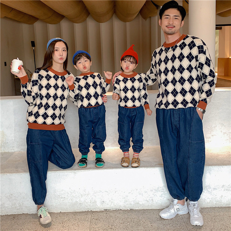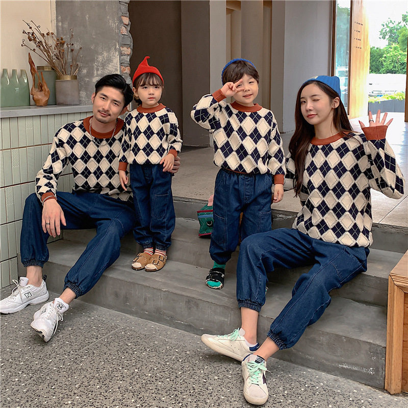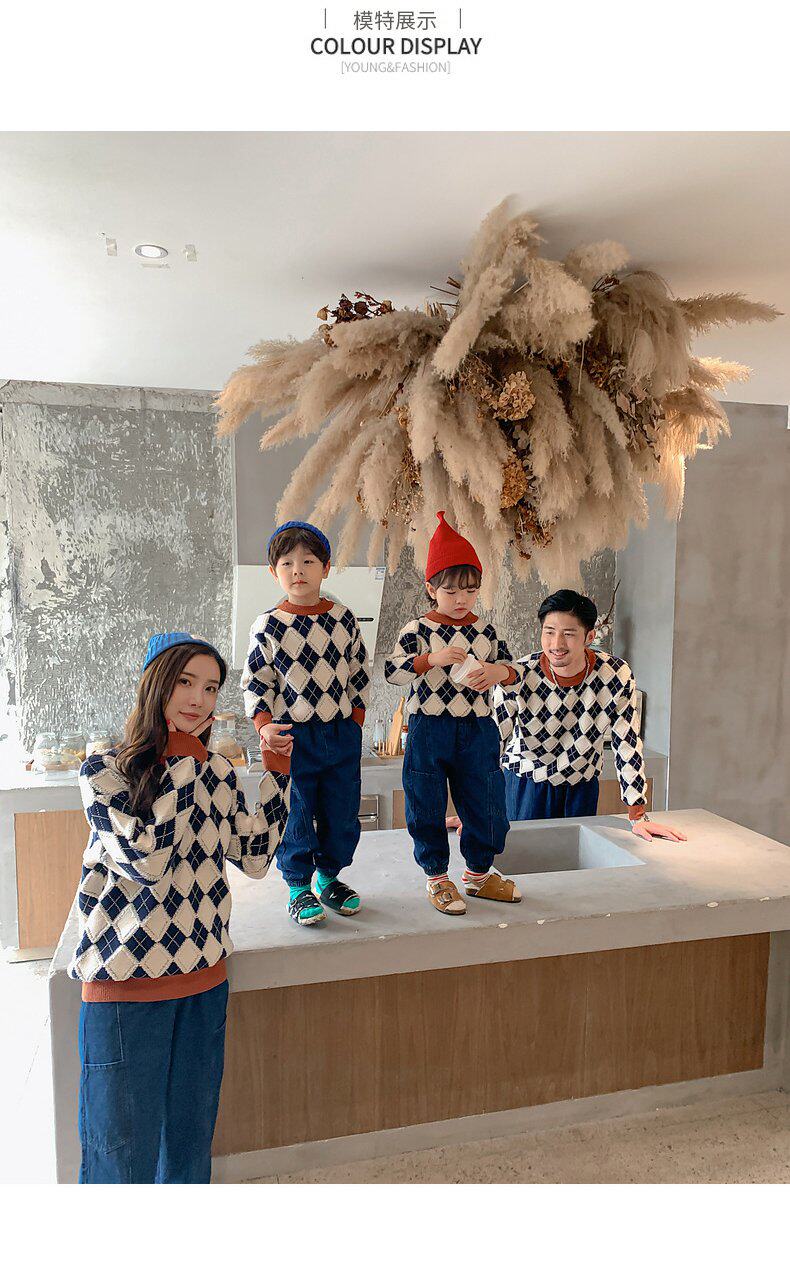 Демисезонный пуховик, свитер с ромбовидным узором, семейный стиль, 2022, популярно в интернете