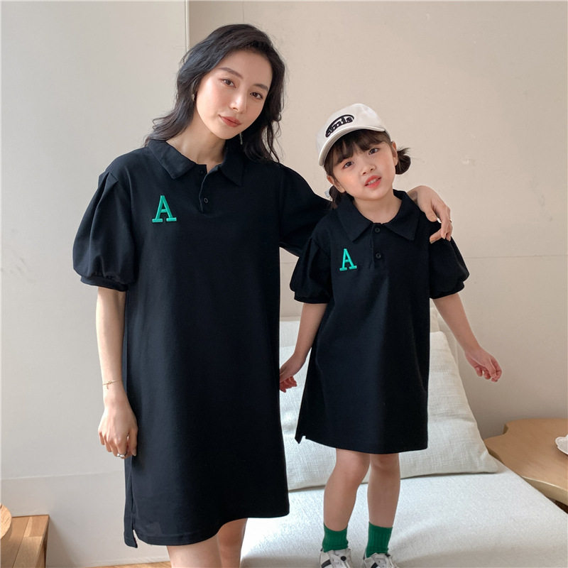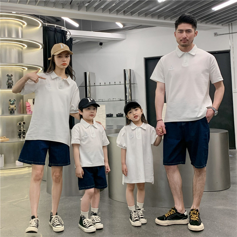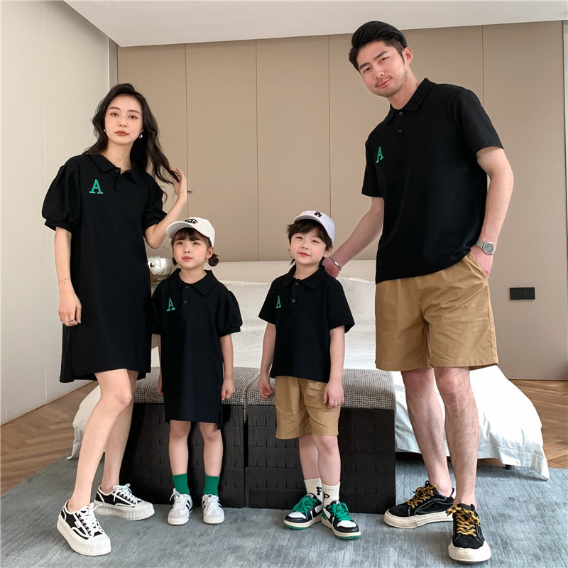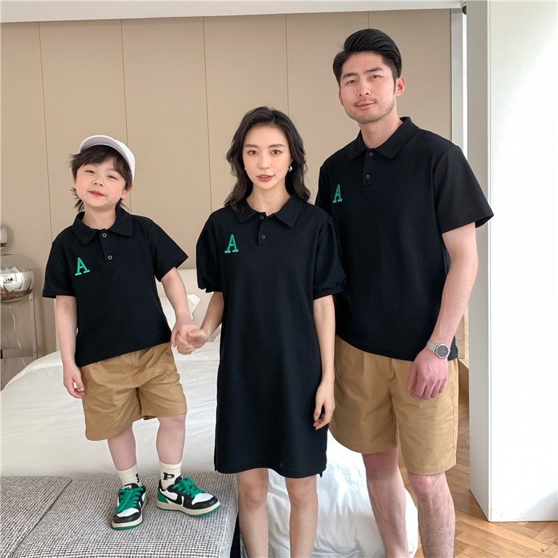 Летняя одежда, платье, футболка polo, семейный стиль, коллекция 2023, в корейском стиле, короткий рукав