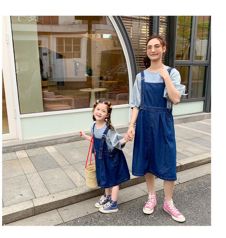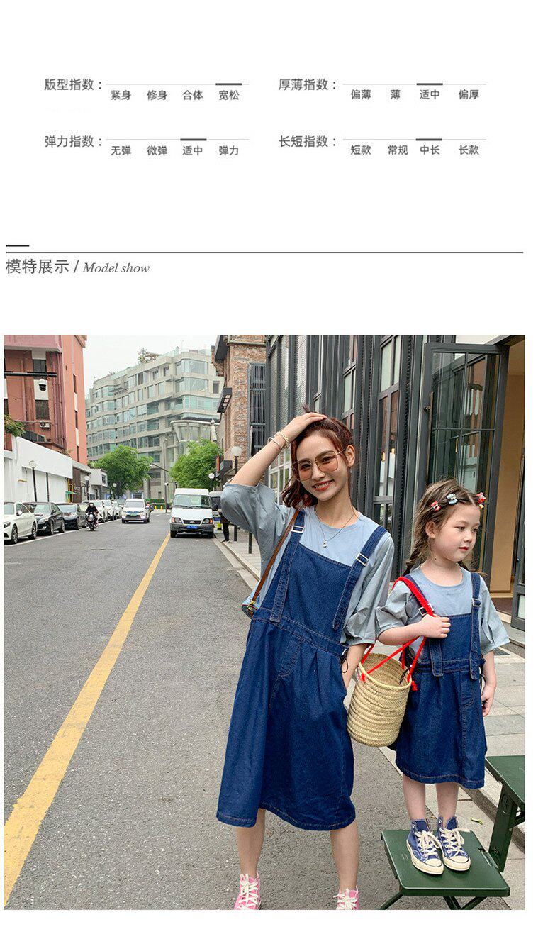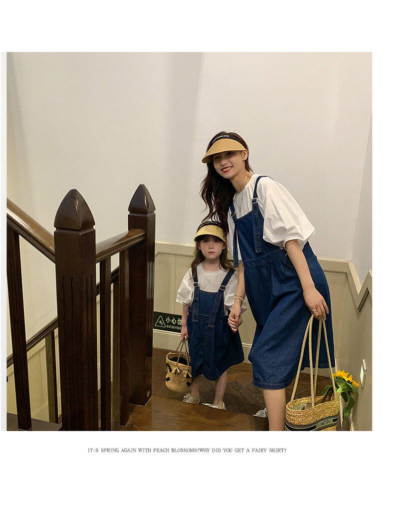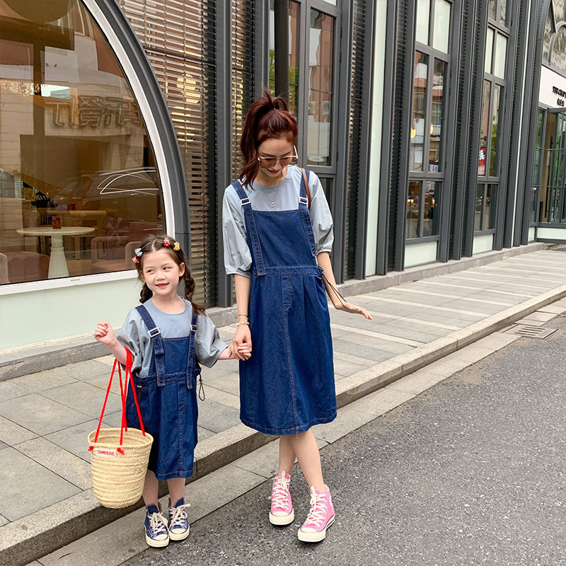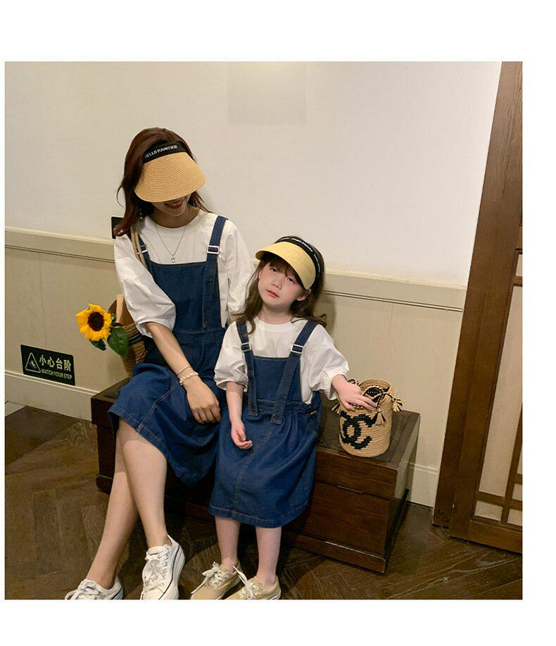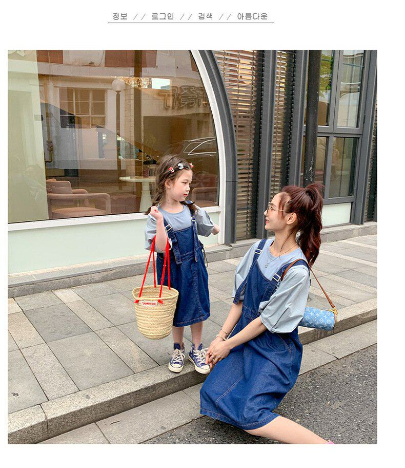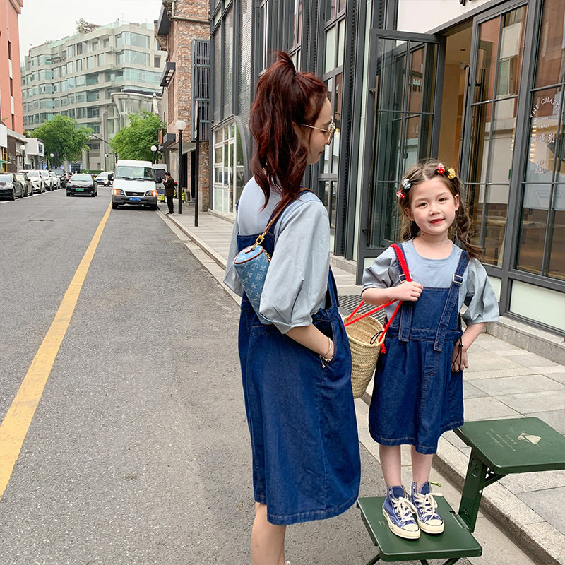 Летняя летняя одежда, тонкая джинсовая футболка, комбинезон, штаны, семейный стиль, в корейском стиле, в западном стиле