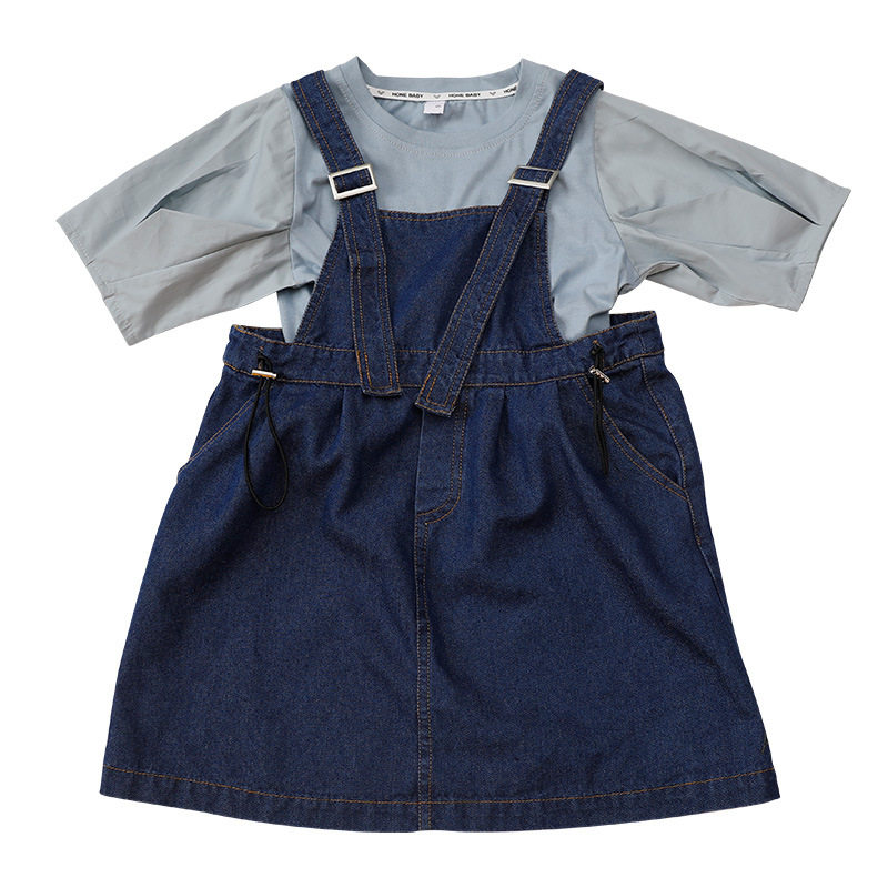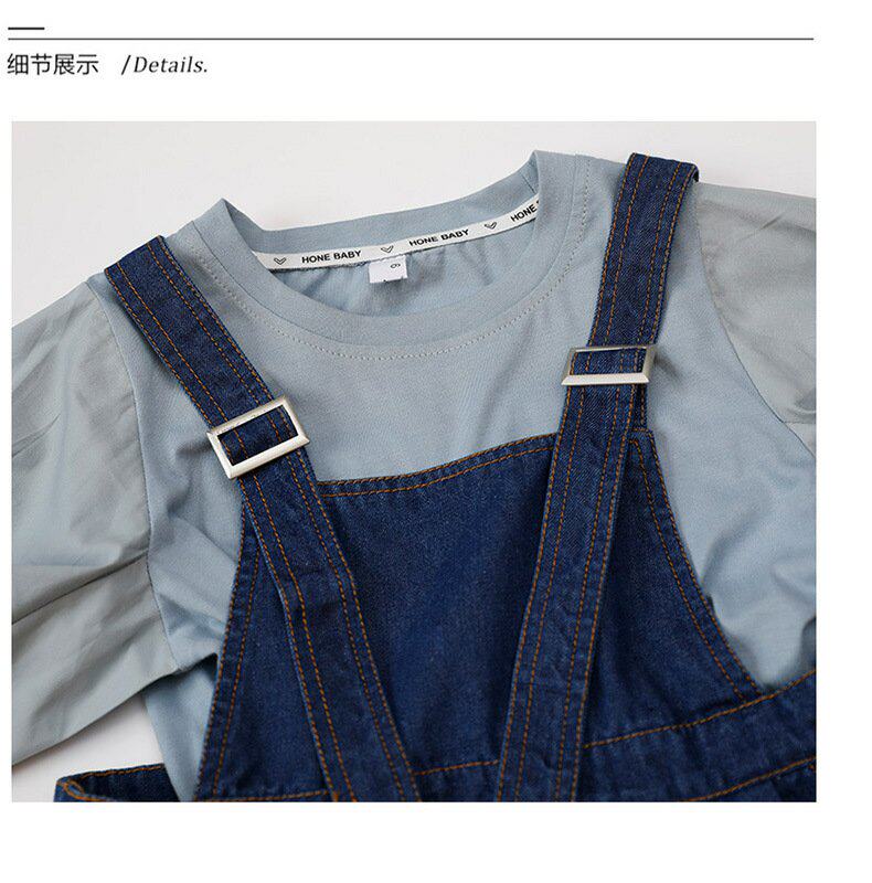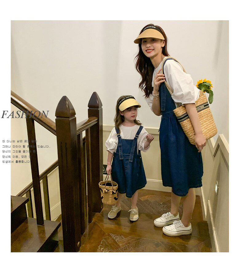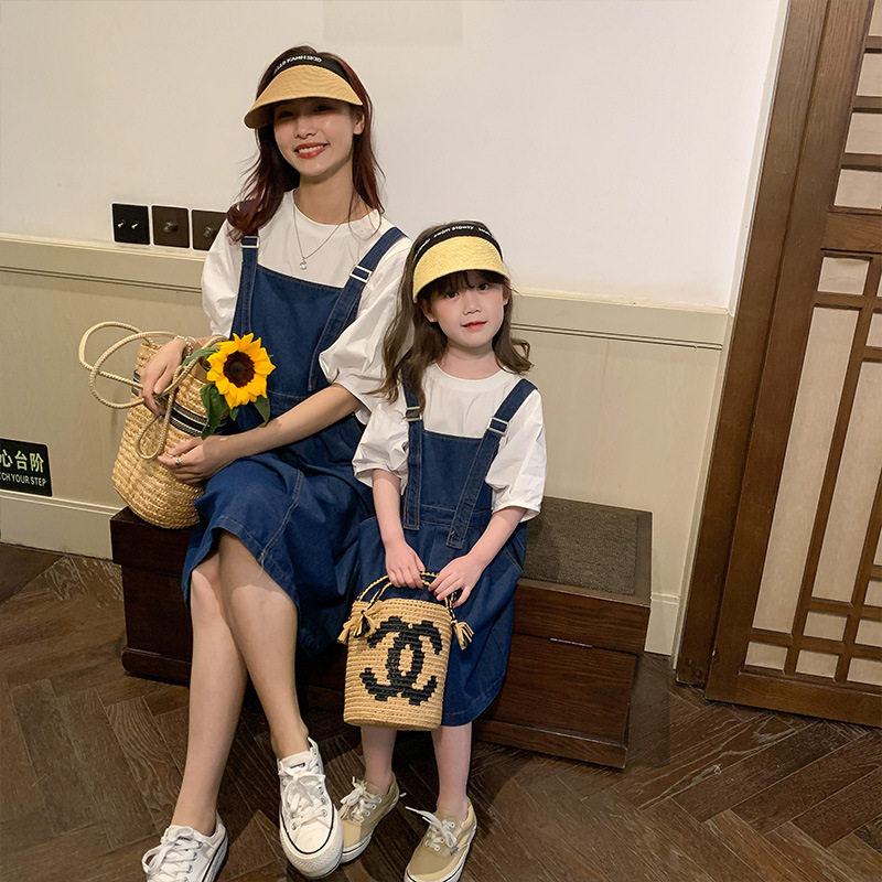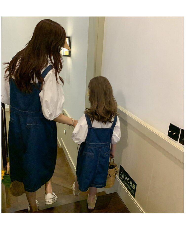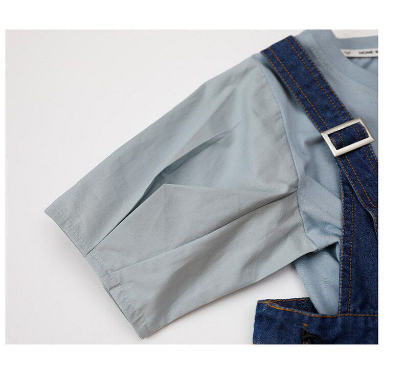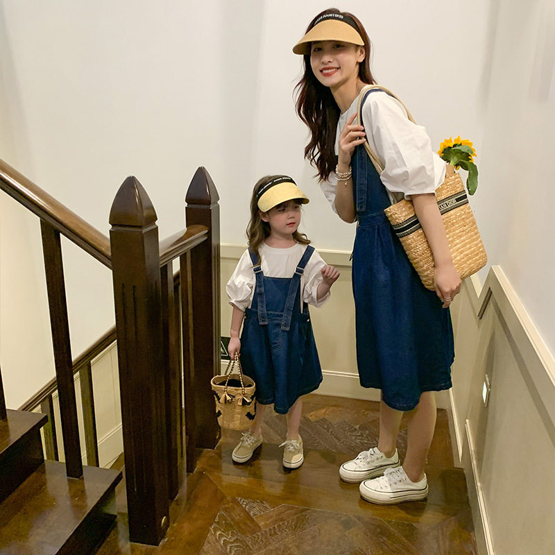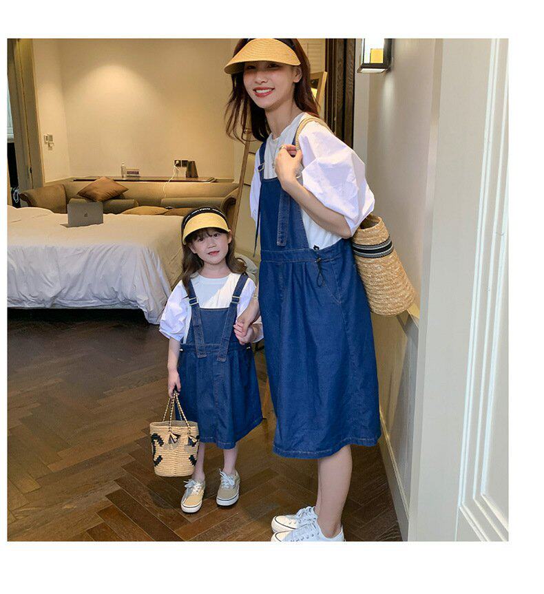 Летняя летняя одежда, тонкая джинсовая футболка, комбинезон, штаны, семейный стиль, в корейском стиле, в западном стиле