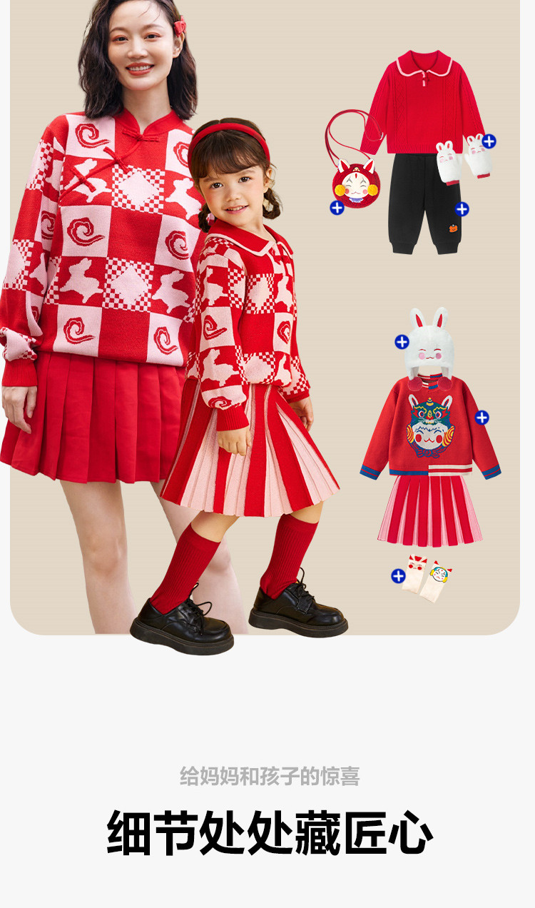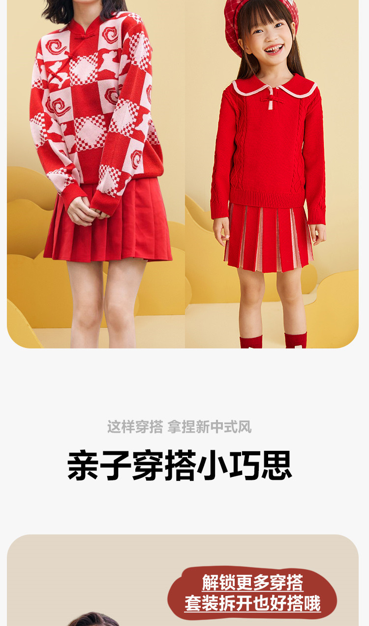 Маленький свитер, красный трикотажный комплект, семейный стиль