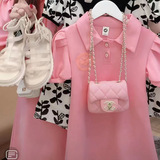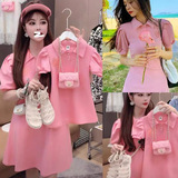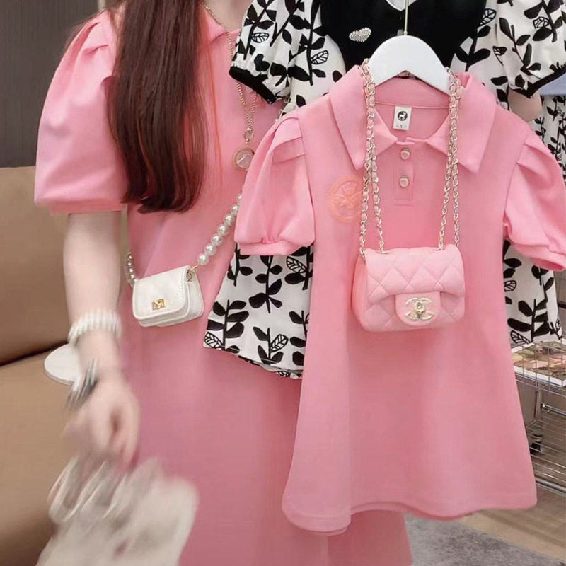 Летняя футболка polo, платье, семейный стиль, рукава фонарики, в корейском стиле