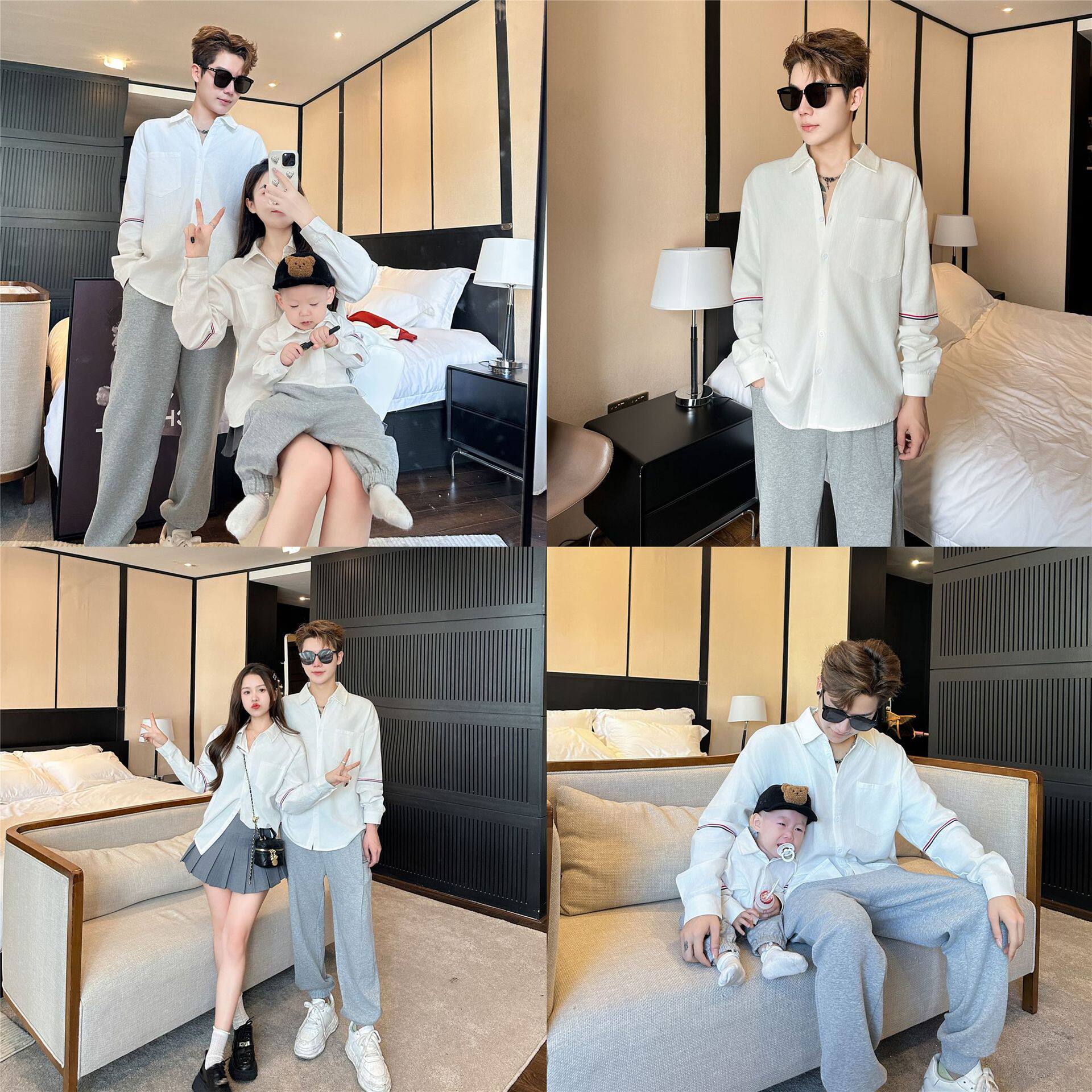 Разные матери -родительские матери и детская куртка 2024 Осень Осень Новые продукты, Семья из четырех белых рубашек из трех белых рубашек, отец и сын