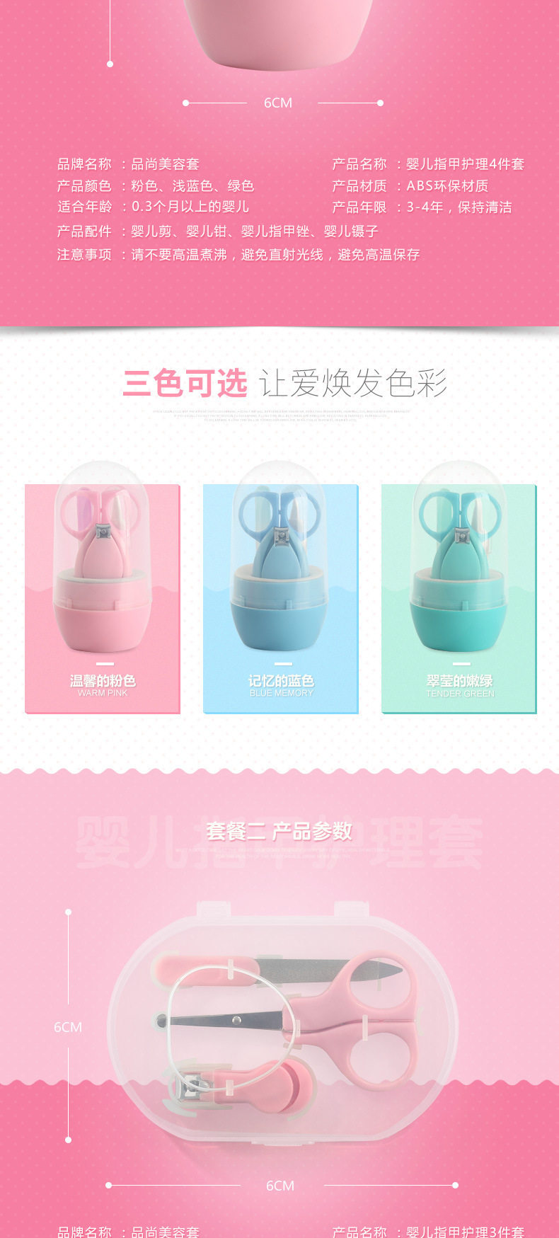 - Розовые детские маникюрные кусачки, комплект, 6 шт