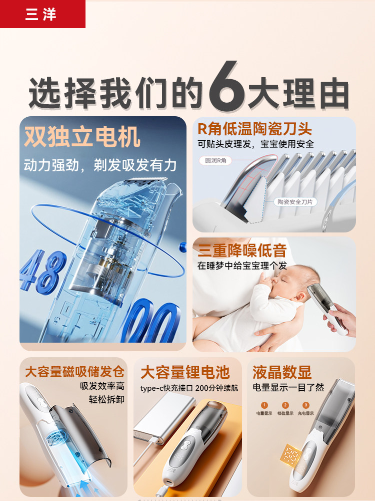 Sanyo, детская беззвучная машинка для стрижки волос для новорожденных для раннего возраста для стрижки волос