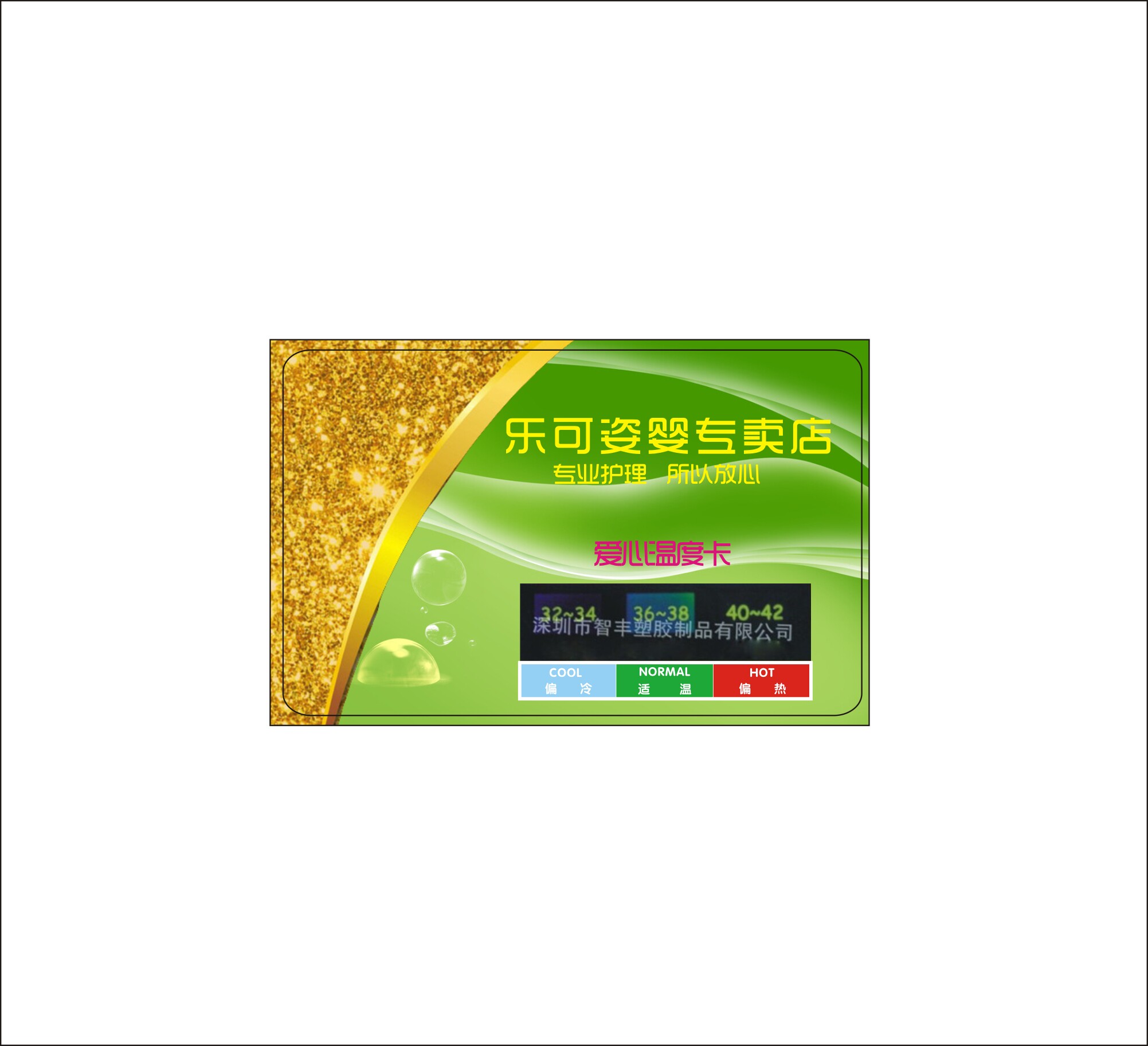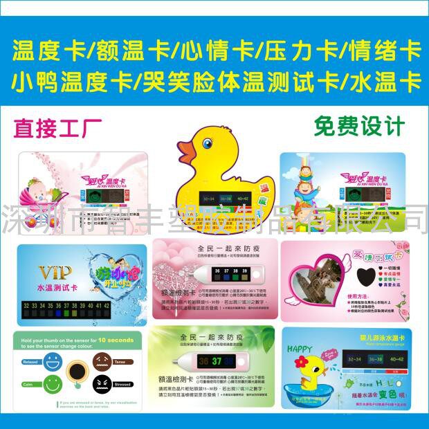 Shenzhen Zhifeng Plastic Products Co., Ltd. -это высокотехнологичное предприятие, посвященное исследованиям и разработкам, производству и использованию специальных функциональных материалов. Органическое слияние пластиковых ремесел.В области ремесленной печати используйте изменение цвета мудрости, чтобы отметить различные изменения условий окружающей среды, чтобы различные цвета могли показать их особое значение, такие как изменения температуры тела, изменения в настроении, изменения эмоции, изменения в давлении и изменения в Температура ... ... ожидая более десяти лет, компания предоставила десятки тысяч отечественных и иностранных компаний с высоким качественным жидкокристаллическим цветом термометров, цветных карт, цветовых пластиковых продуктов и других новых подарочных настроений, Любовь эмоциональная испытательная карта применима к мировой технологии измерения температуры, тока температура отображается с помощью изменений цвета. Измерение точное, показания очевидно, интуитивно и удобно. Как правило, температура может быть измерена примерно за 15 секунд. Повторно используется. Станьте продуктом, производимым в соответствии с креативностью клиентов, или печатайте рекламный контент компаний или продуктов клиентов на карте, в качестве рекламного рекламного подарка, чтобы расширить популярность предприятий и его бренда.
