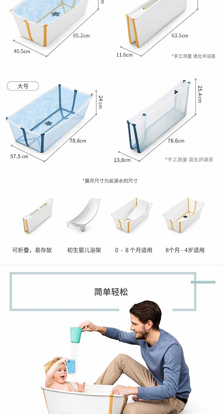 Детская портативная большая ванна для младенца, 0-4 лет