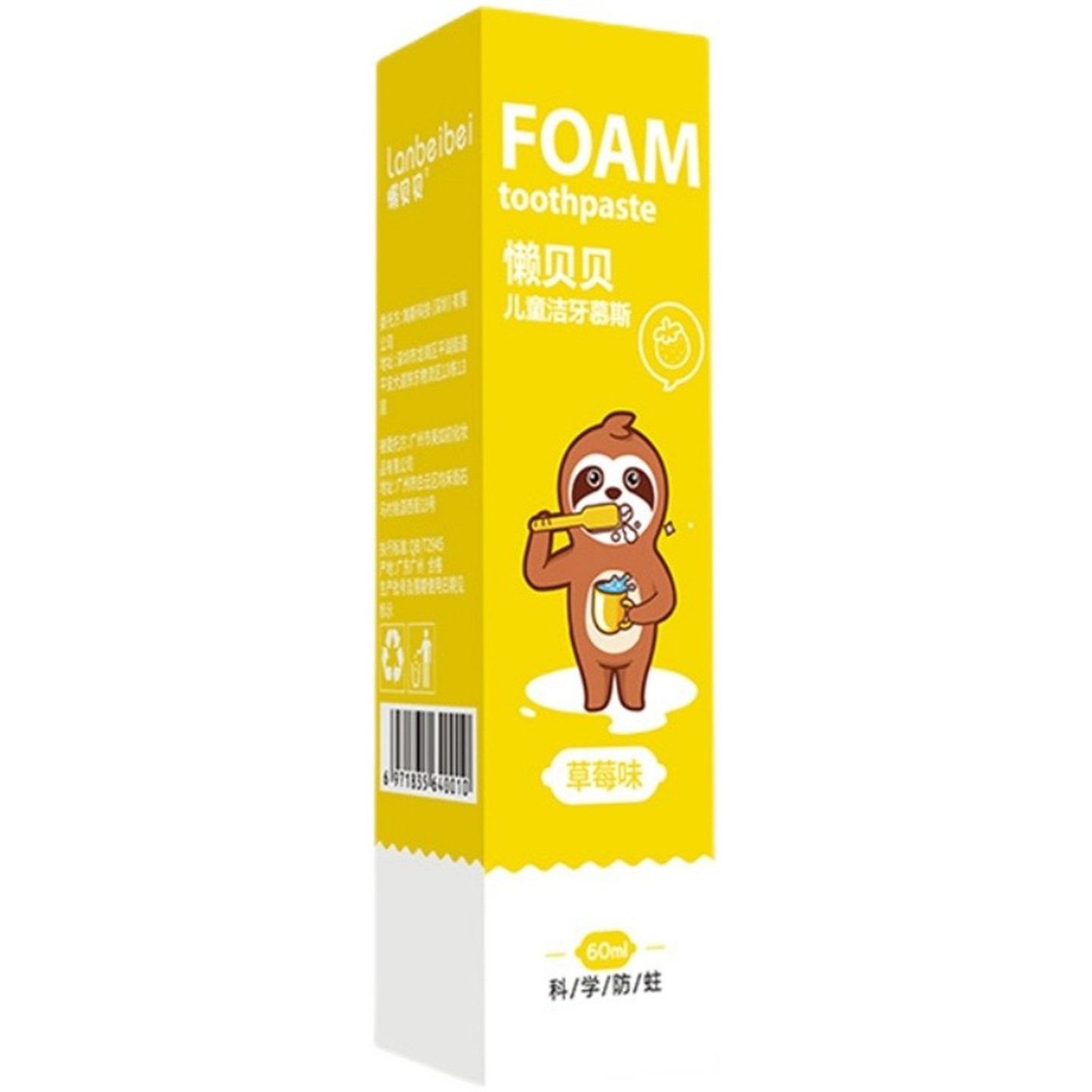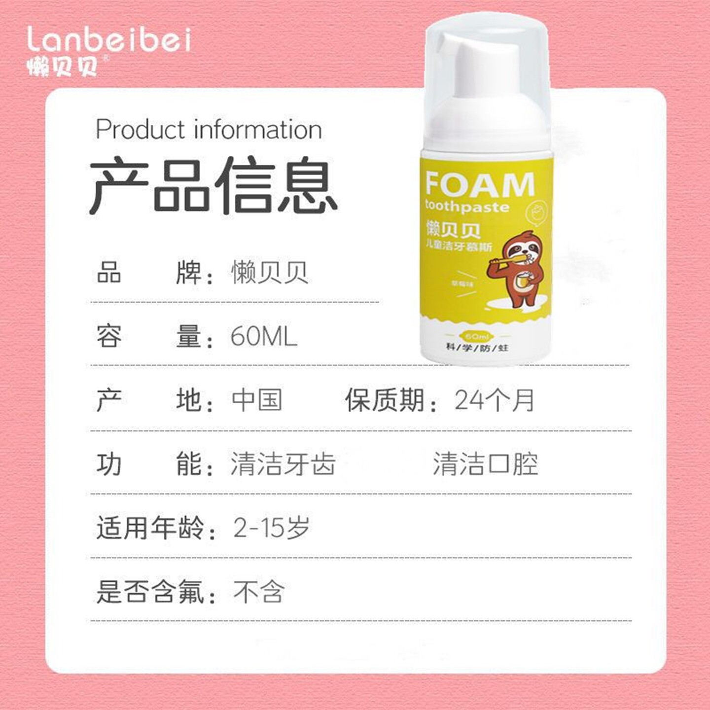 懒贝贝 Детский мусс из пены, зубная паста, детская клубника для младенца, не содержит фтор, защита от кариеса, период смены зубов, 2-3-15 лет