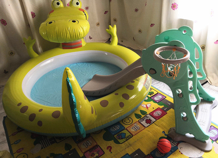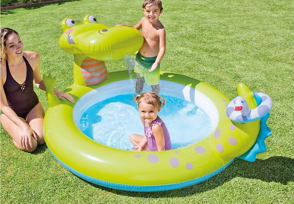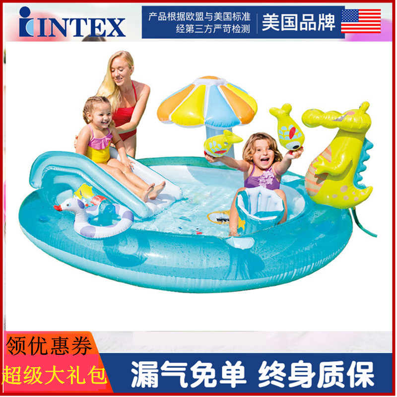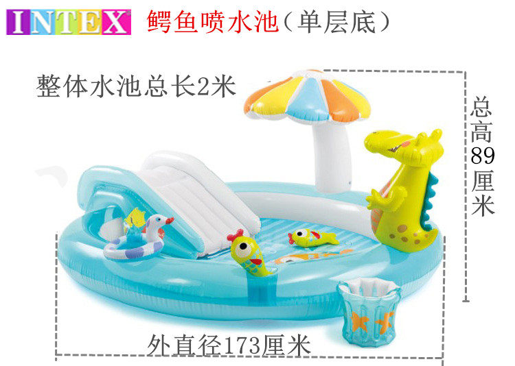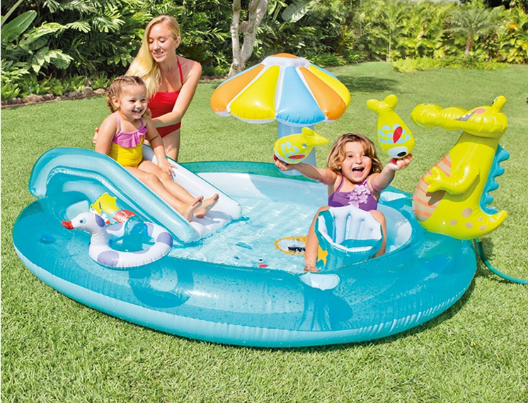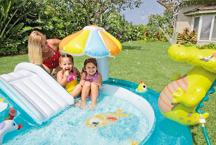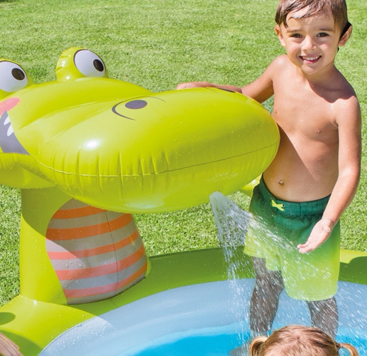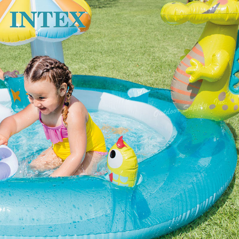 INTEX Аквапарк для игр в воде, горка, надувной большой бассейн с шариками, крокодил