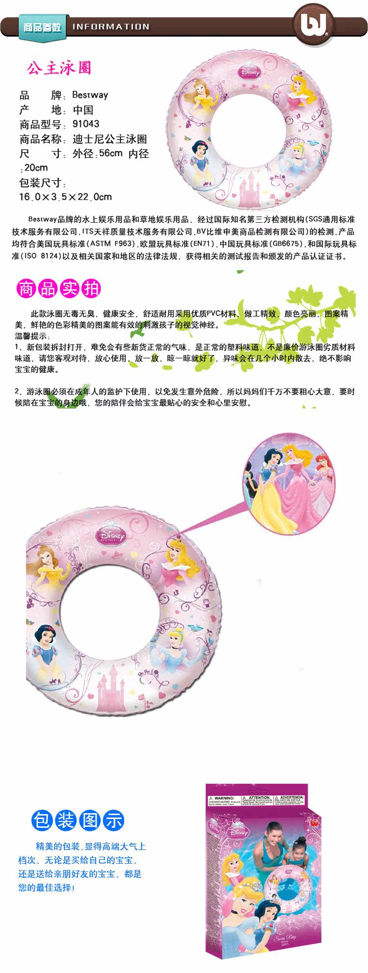 Bestway 91043 Disney White Snow Snow Cartoon Cartoond's Fling Flight Circle Плавающий круг