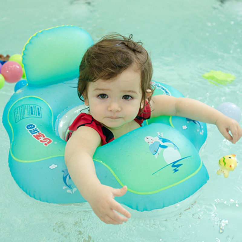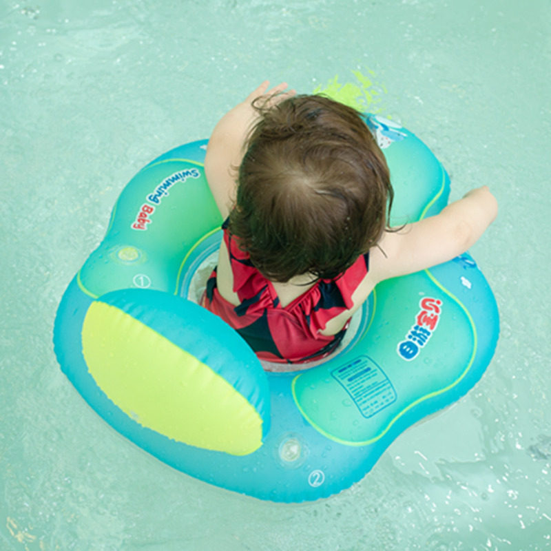 Самостоятельный ребенок, лежащий на круге плавания, чтобы предотвратить развернутый круг кольца шеи.