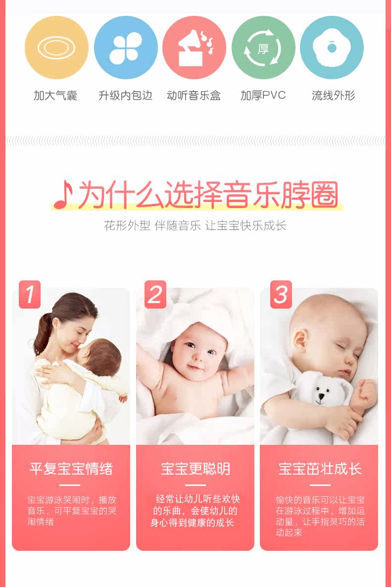 Надувной плавательный круг для новорожденных с музыкой, увеличенная толщина, 0-12 мес.