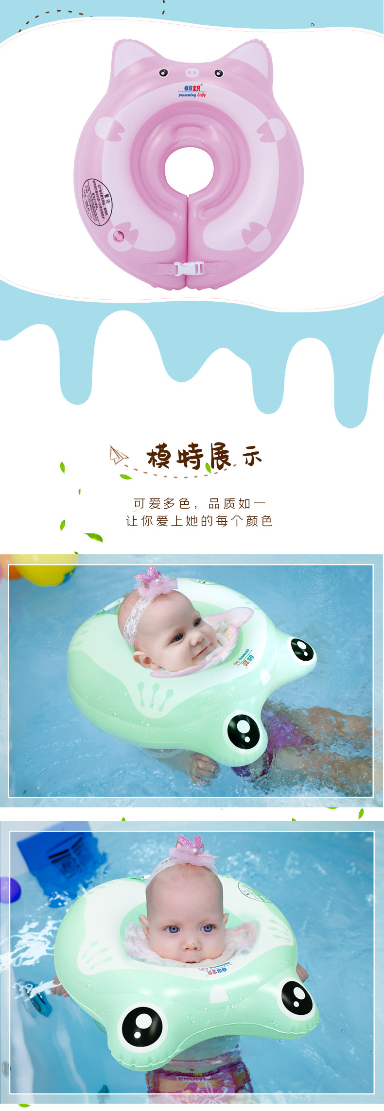 Мультяшный мягкий надувной плавательный круг для шеи для новорожденных, подушка безопасности, увеличенная толщина, две воздушные камеры