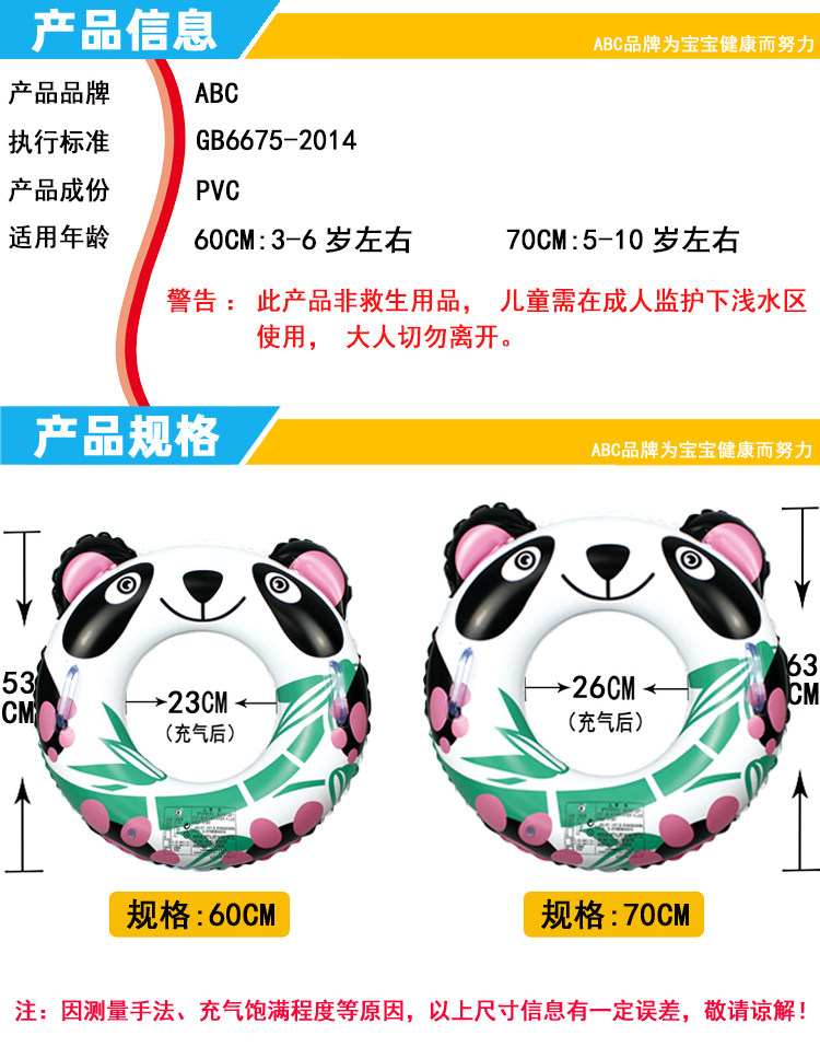 ABC Плавательный круг для мальчиков, новая коллекция, панда, увеличенная толщина, 3-6 лет