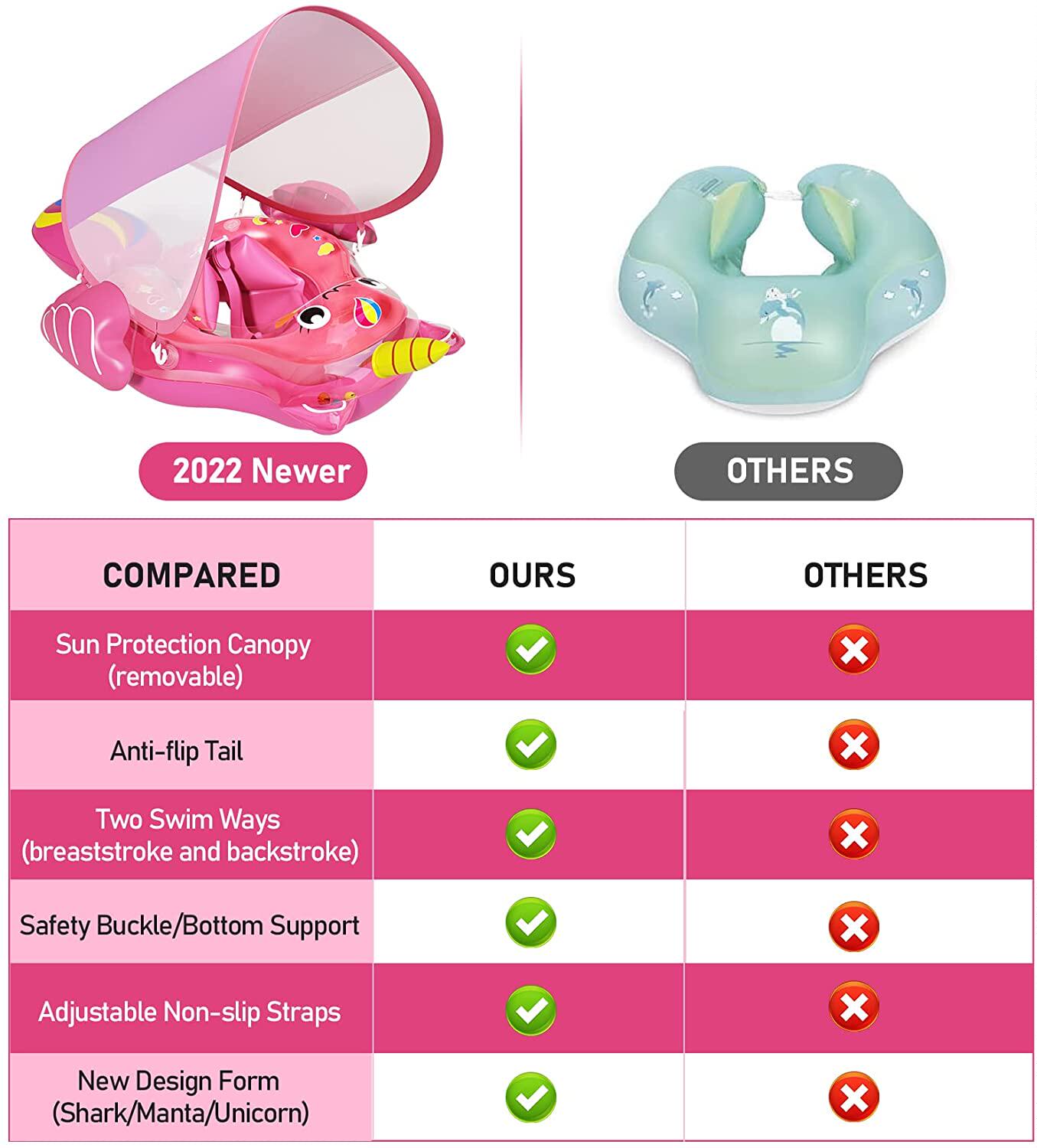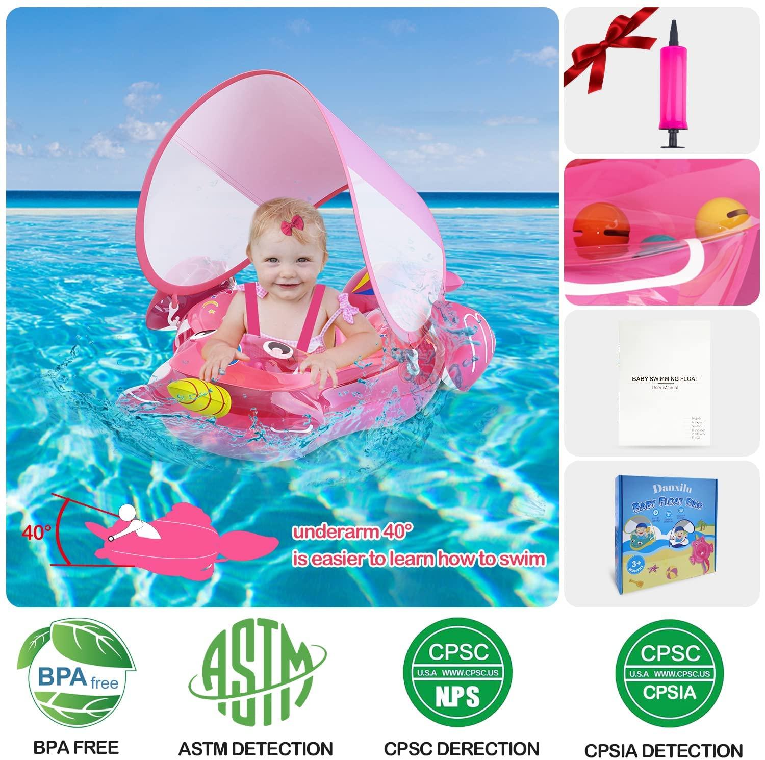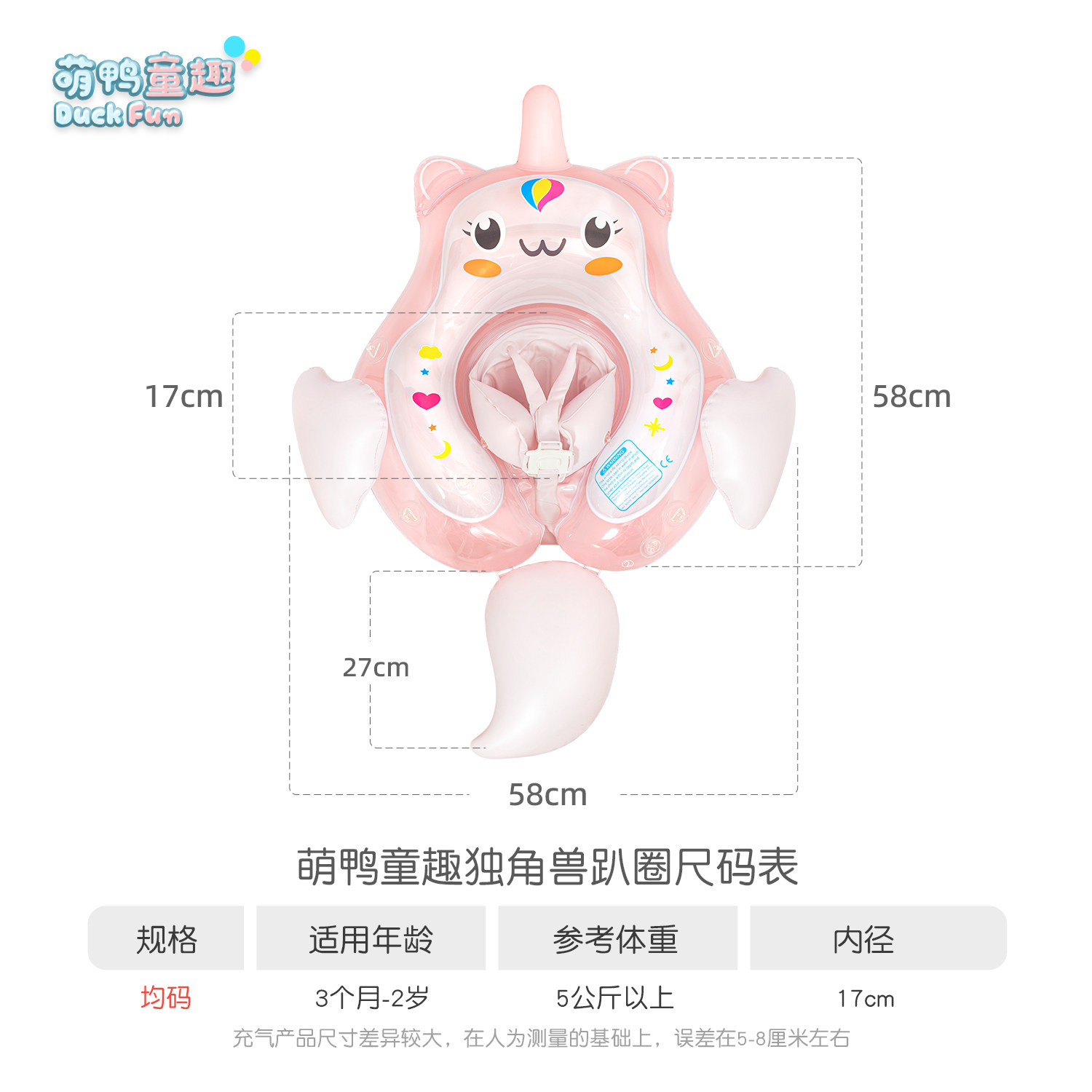萌鸭童趣 Безопасный плавательный круг для новорожденных для девочек, единорог, 0-3 лет