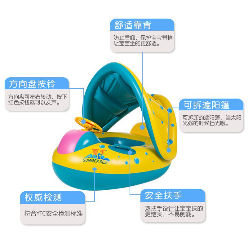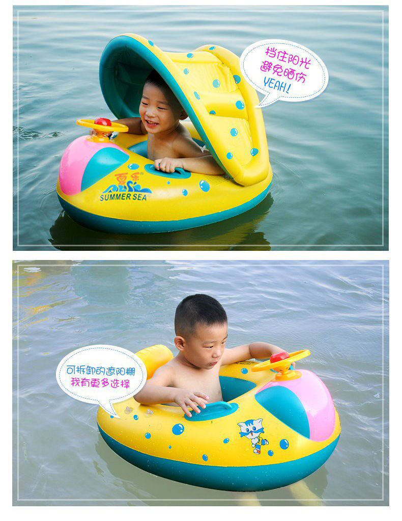Плавательный круг для младенца с навесом для плавания, увеличенная толщина, 0-3-5 лет