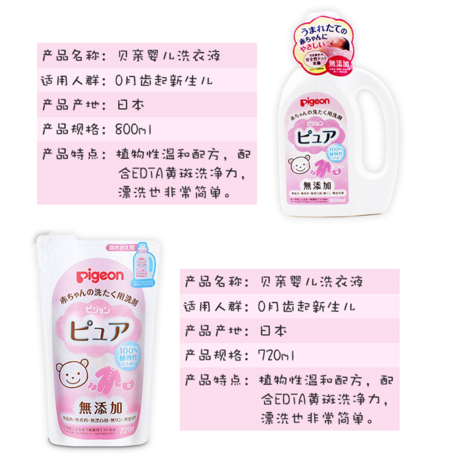 Pigeon, японский оригинальный стиральный порошок, детский комбинезон, детское моющее средство, 800 мл, 720 мл