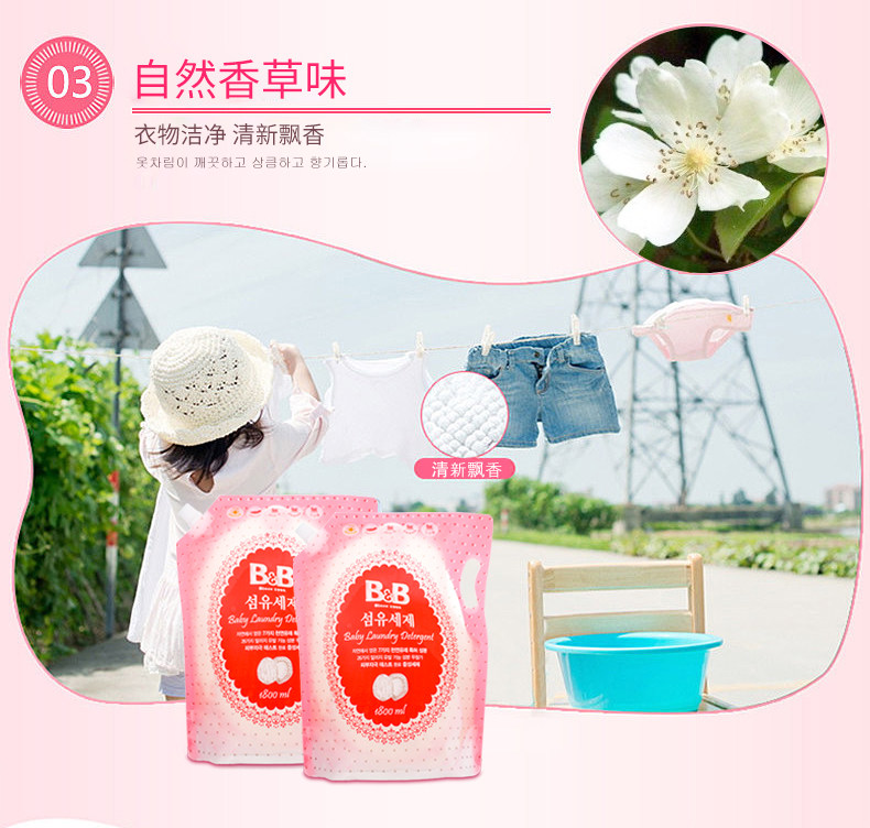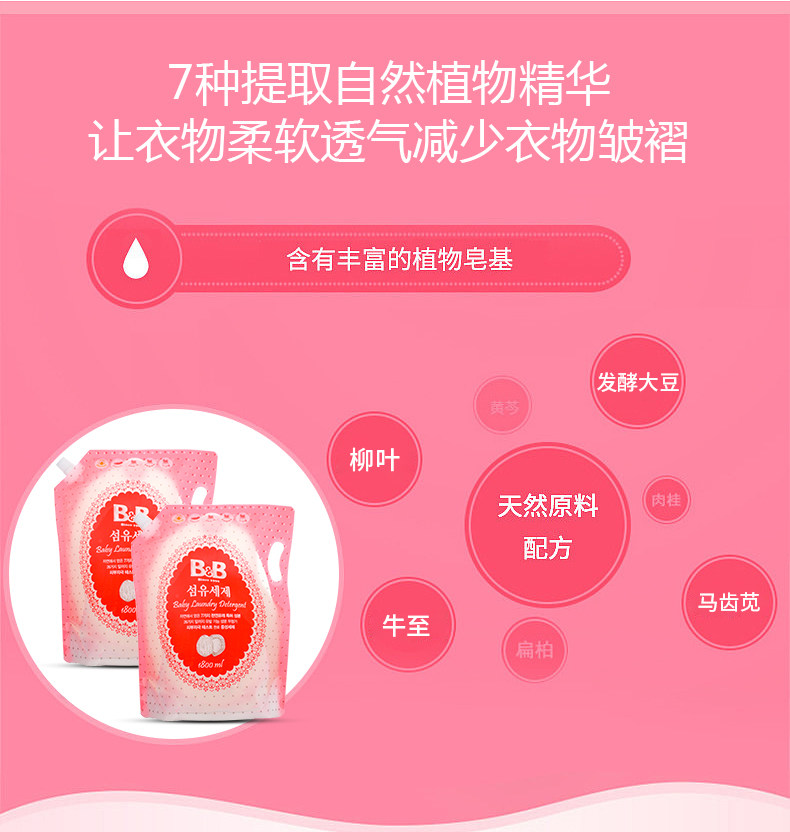 ·Натуральный мыльный порошок с высоким содержанием большей"Сосна масло"Улучшение стирной силы, в то время как это не приносит раздражению кожи для ребенка.