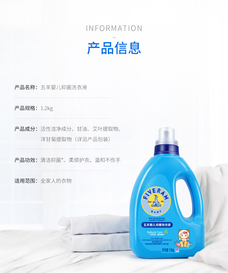 五羊 Детский антибактериальный гигиенический стиральный порошок для стирки для новорожденных