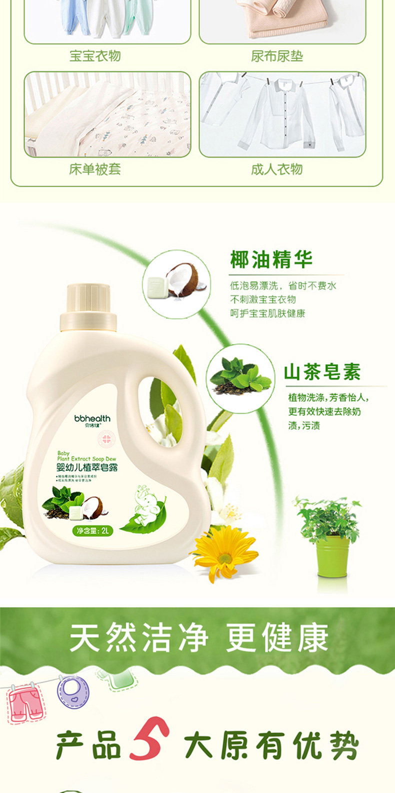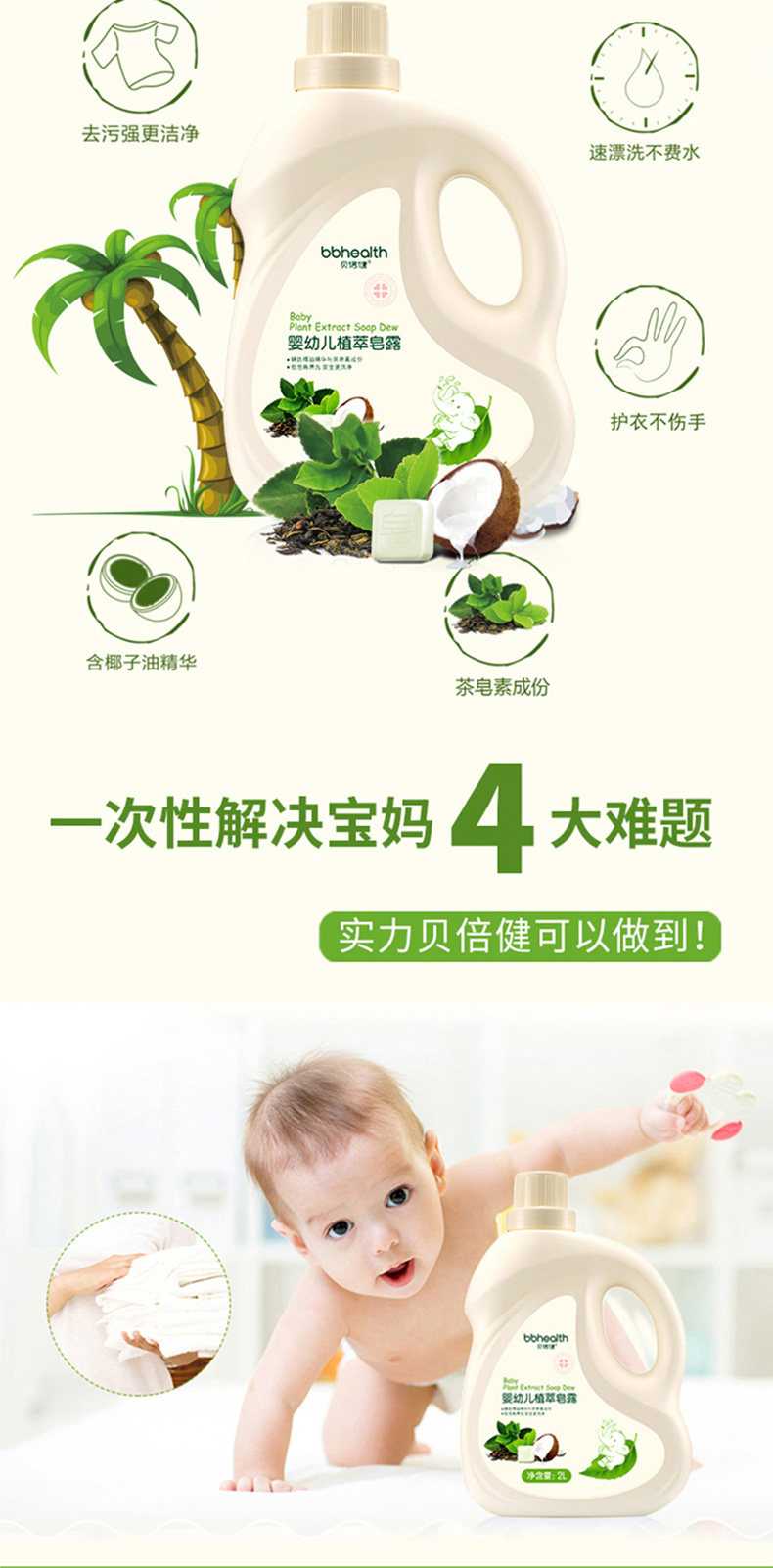 贝倍健 Детский антибактериальный стиральный порошок для младенца с экстрактом растений, детское натуральное мыло для новорожденных