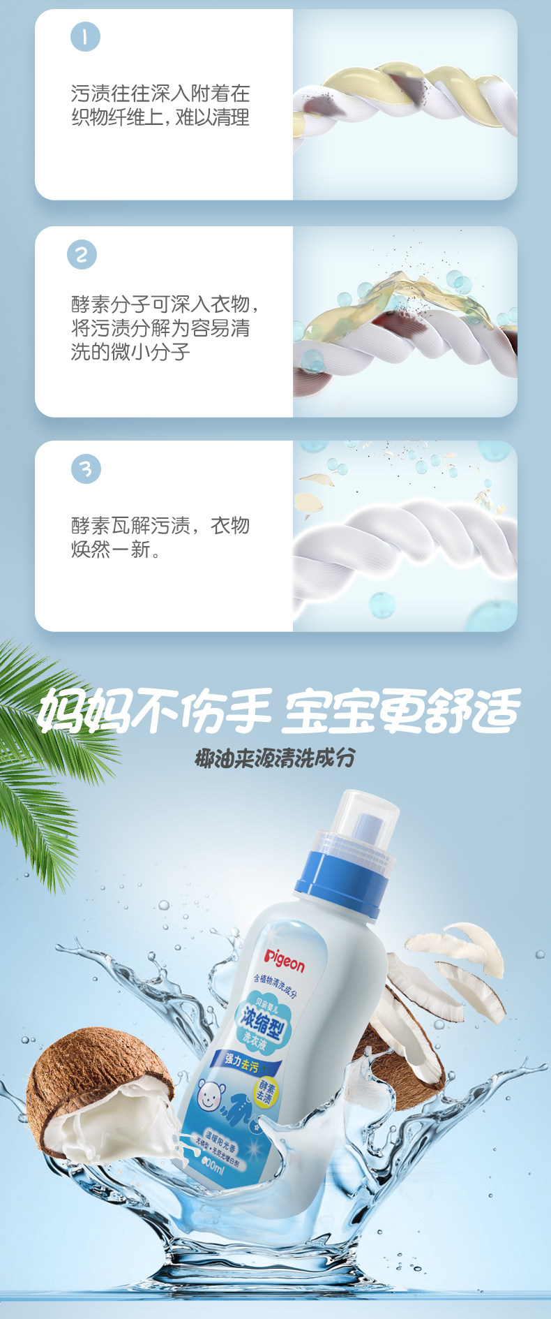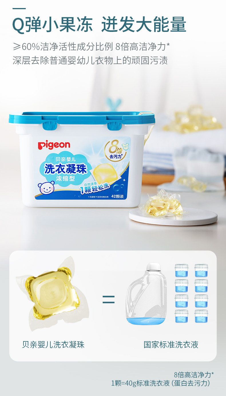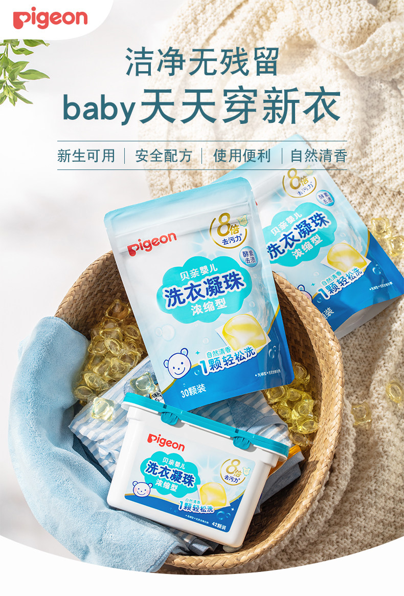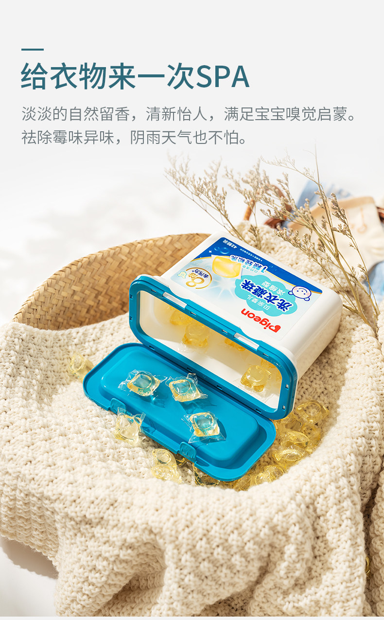 Pigeon, детский концентрированный стиральный порошок, флуоресцентные ароматные капсулы для стирки, удаление пятен
