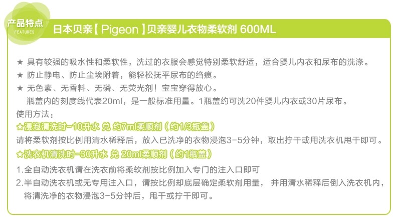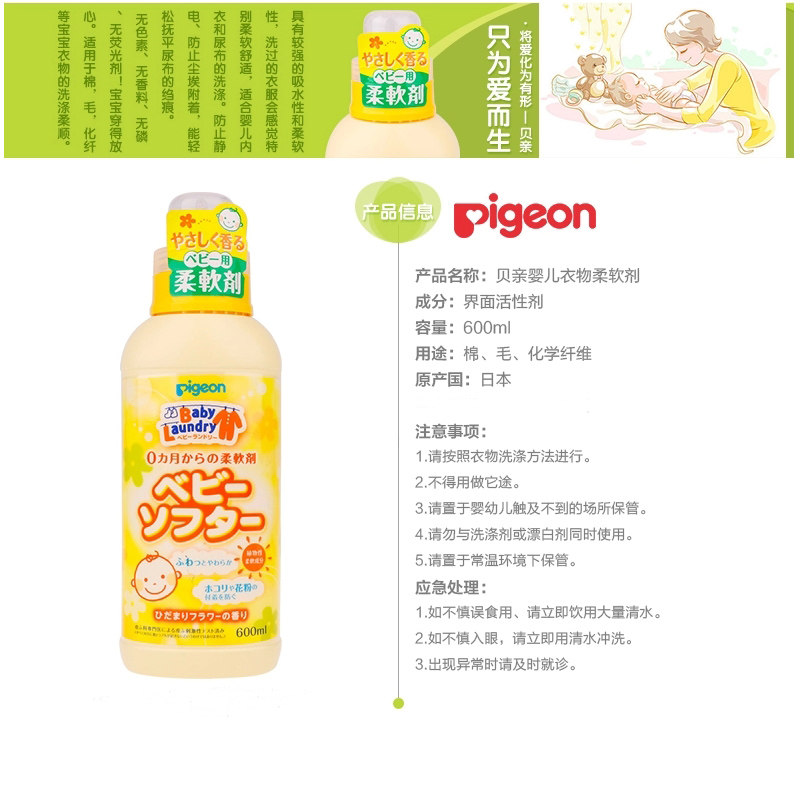 Pigeon, японский натуральный антистатический детский кондиционер, 1100 мл