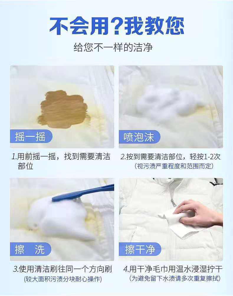 Напоминание: этот продукт обладает хорошим эффектом очистки для легких грязных курток, подходящих для воротника, манжеты и грязи с небольшой площадью.Если вы сталкиваетесь с водой -меняющимися тканями, большой площадью, тяжелыми масляными пятнами, пожелтением и цветом.Нефтяные удары, пятна крови (проникли из старого или имеют блок), рекомендуется почистить его в профессиональном магазине прачечной