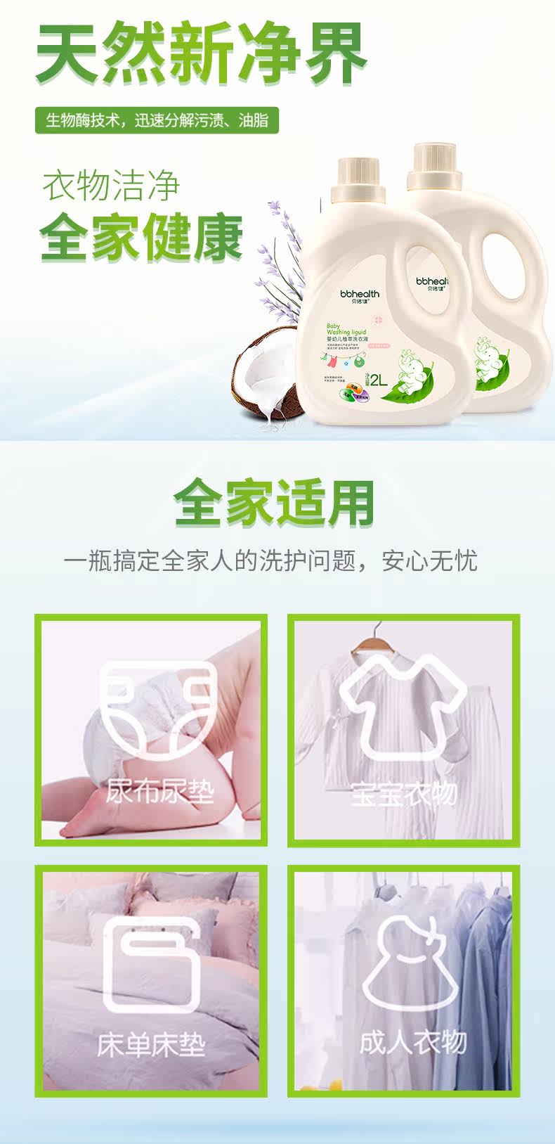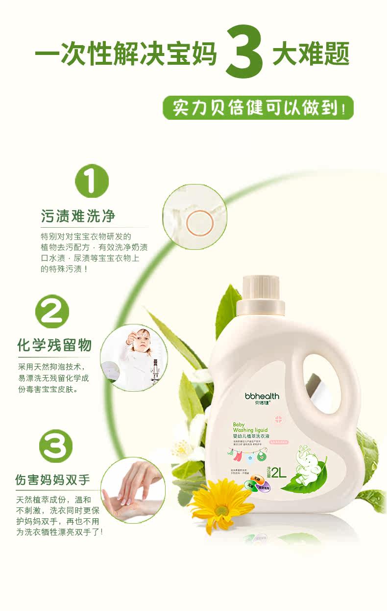 贝倍健 Детское средство для стирки для младенца для новорожденных, детский стиральный порошок с экстрактом растений