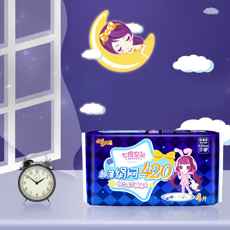 七度空间 Ультратонкие сверхдлинные салфетки, гигиеническая прокладка, ночное использование, 420mm, 4 штук
