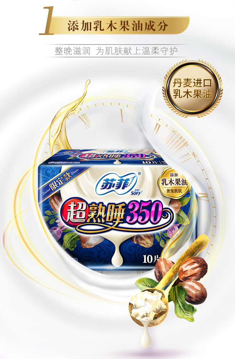 Свежая антибактериальная гигиеническая прокладка, ночное использование, 350mm, 10 штук