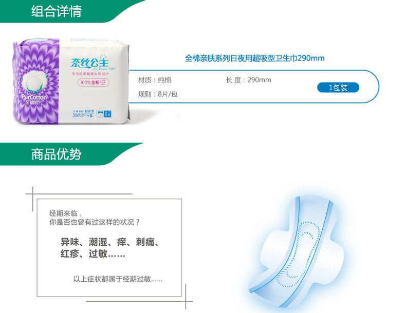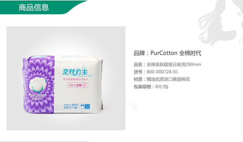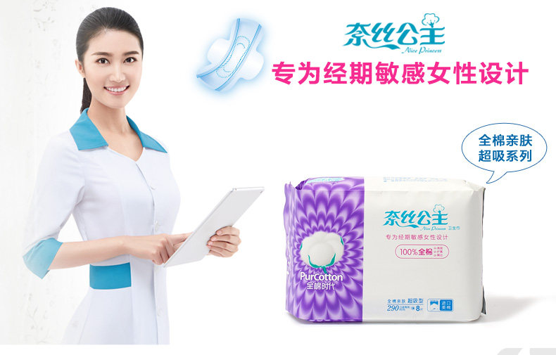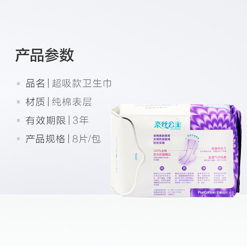 В хлопковую эру, хлопковая поверхностная кожа -дружелюбная санитарная салфетка Супер сосание дня и ночное двойное использование 8 штук