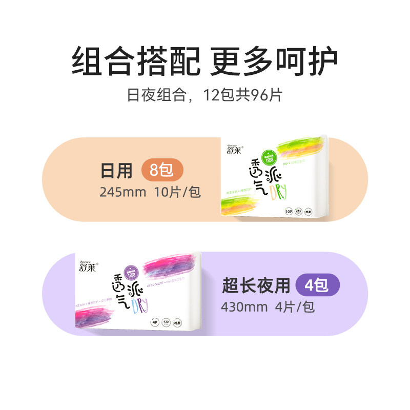舒莱 Дышащая гигиеническая прокладка, длинные салфетки, комплект, 96 штук