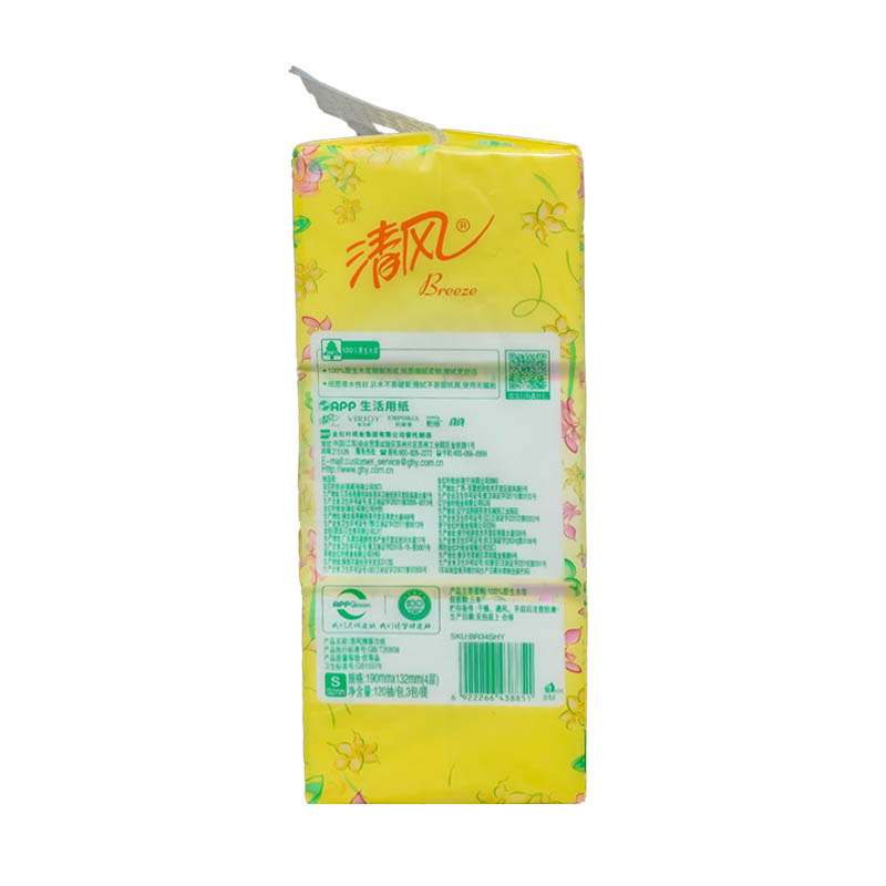 清风 Br34shy Huayun Pure Lacial Paper Prises 120 Насос/упаковка 4-х слоя сгущенного 3 упаковки/упаковка 1 насос