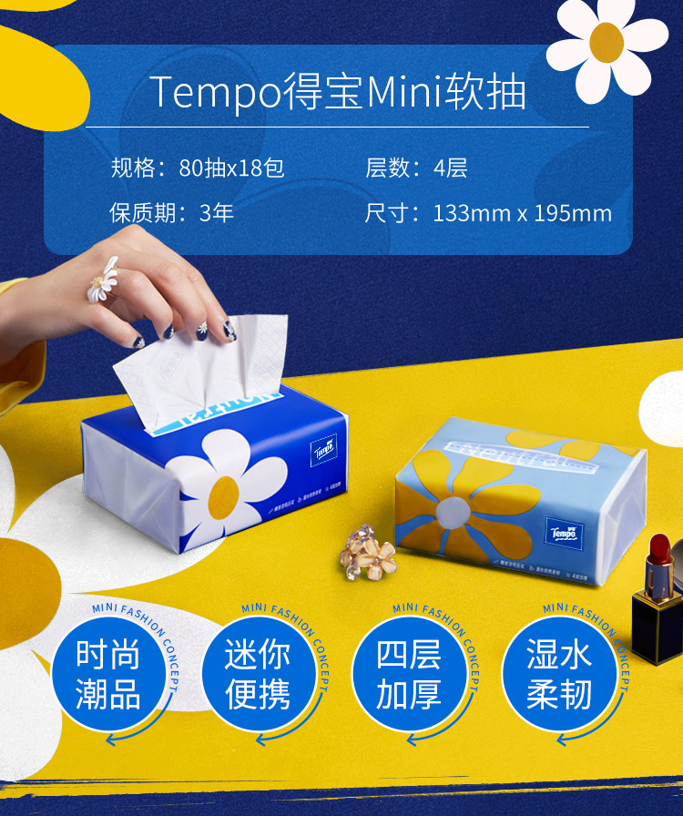 Tempo/得宝 Мягкая ничья 4-слойная утолщенная мини-ромашка на рисунок