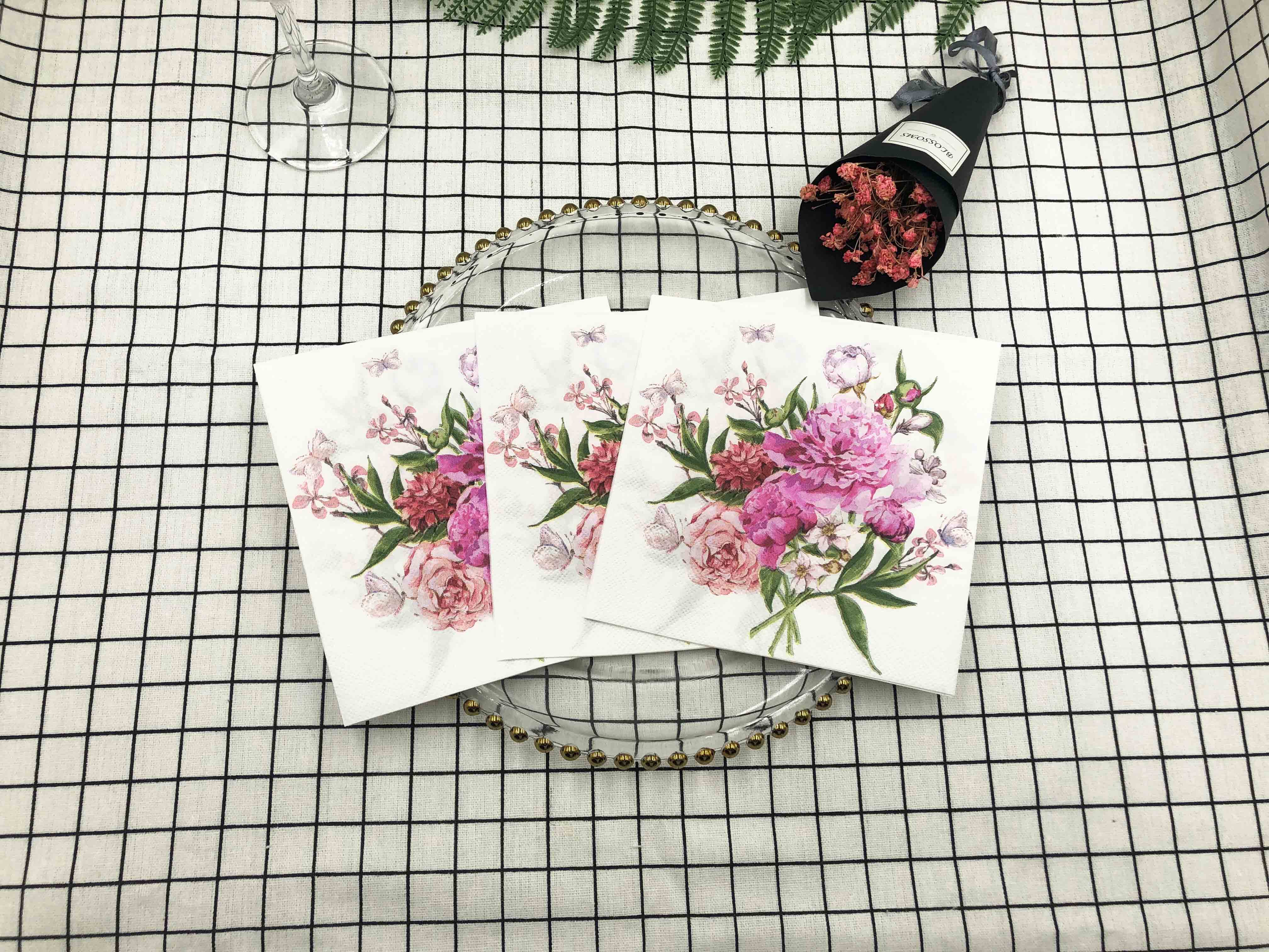Красные бумажные салфетки для вечеринки, квадратное полотенце, в цветочек