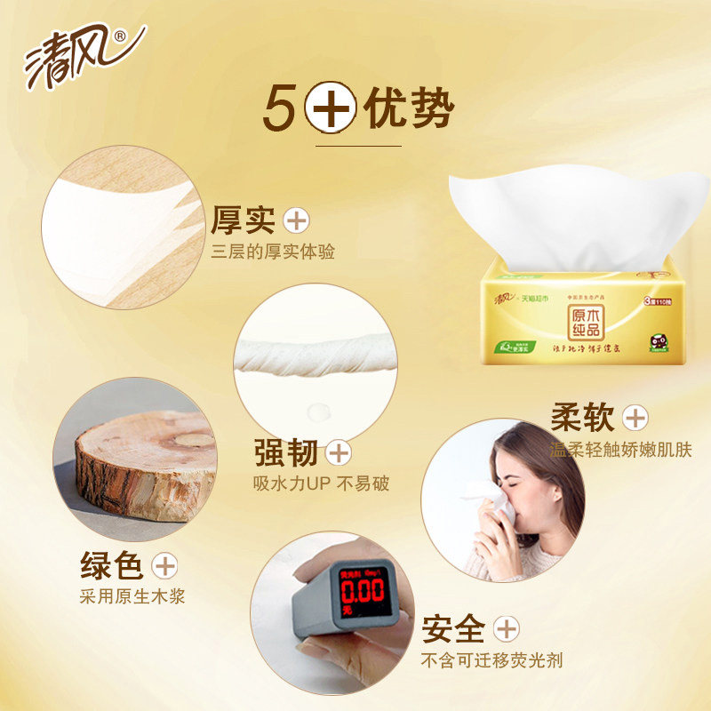 Qingfeng Pucking Paper Золотая сумка ткань, туалетная бумага для салфетки 3 слой 110 насос 30 пакетов, инсталляция реальной времени, оптовая оптом полная коробка