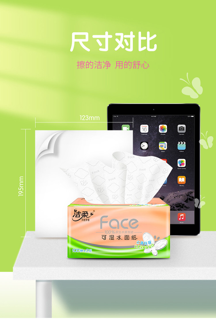 Jierou Face Нажмите на цветочный насос бумажные полотенца, 3 слоя из 100 перекачивающих 30 упаковок дома для доступной установки