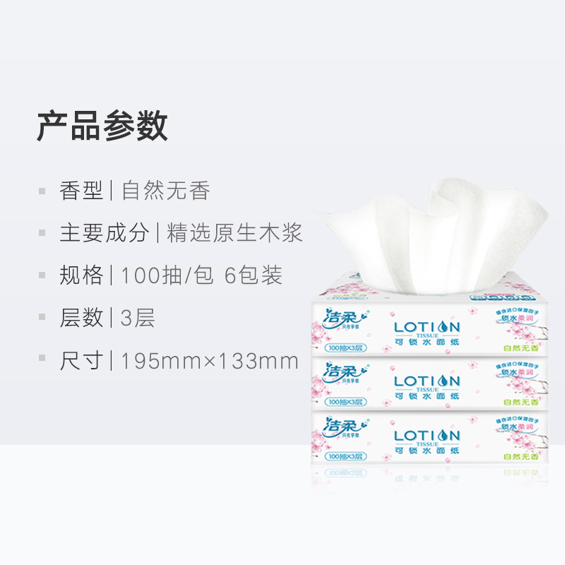 Jierou Paper Lotion Series мягкие бумажные полотенца 3 слоя 100 насоса 6 упаковок детского крема для младенцев со сливками