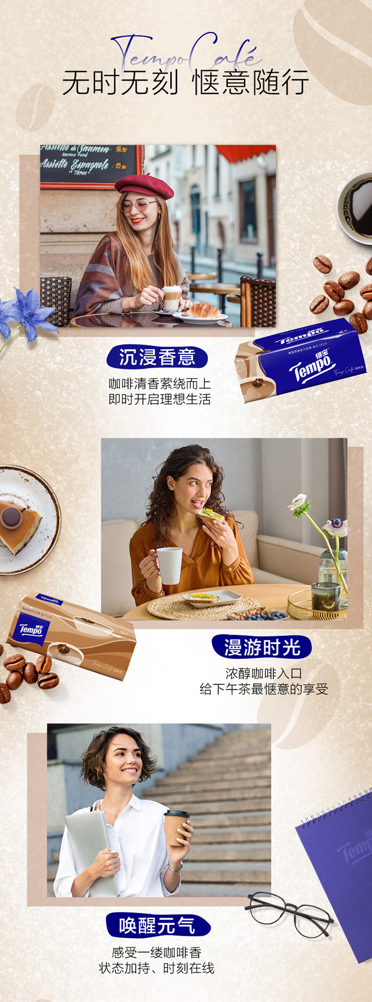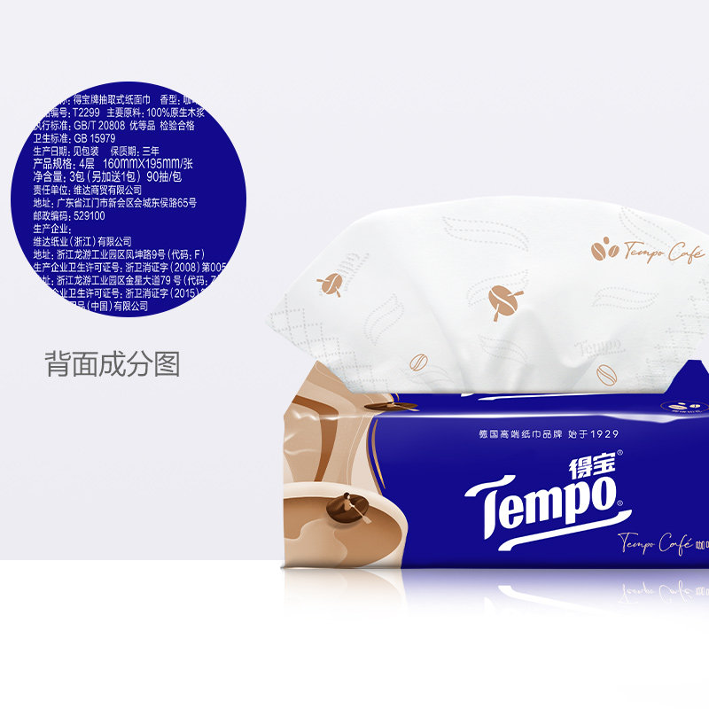 Tempo/得宝 Бумага 4 -наполняющая бумага Портативная печатная бумага Глубокая кофейная аромат/насос Sakura Xiang 90 4 упаковки