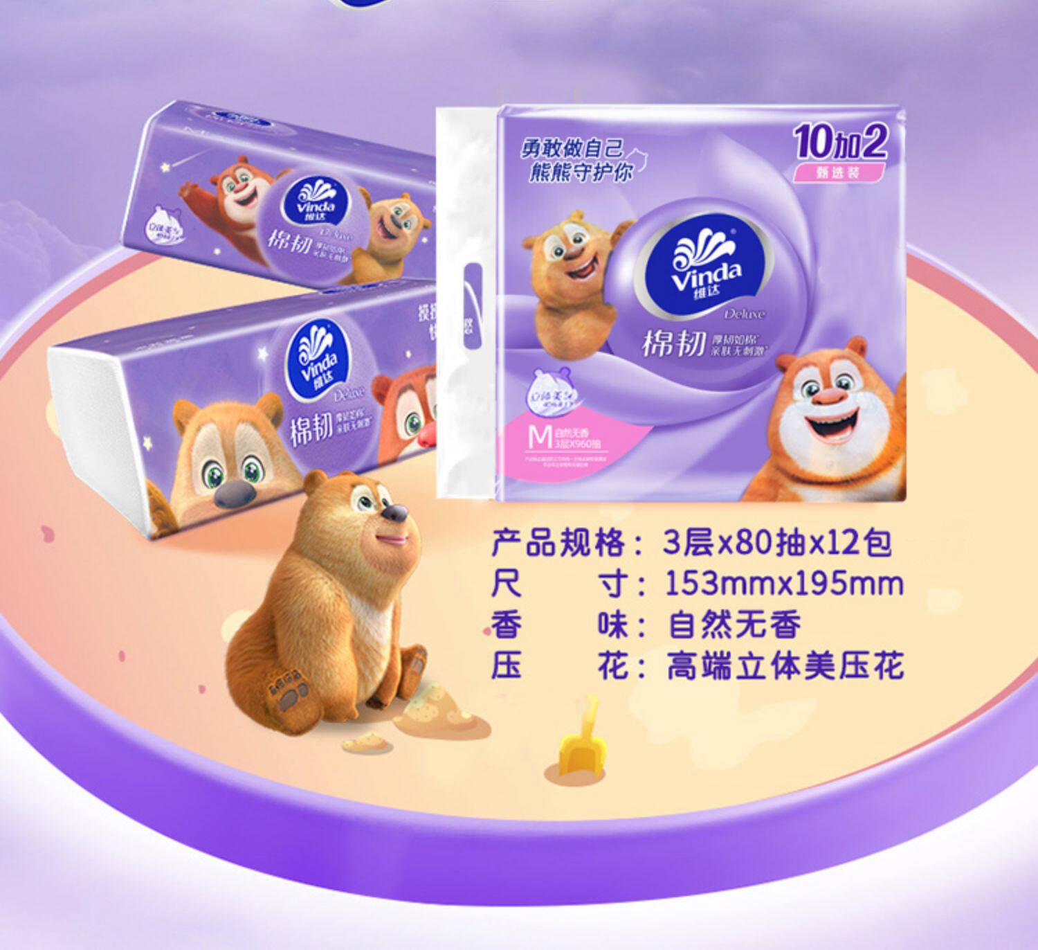 Vida cotton rouge медведь из трехмерной красоты накачивание M Code 3 слои 80 насоса 12 упаковок санитарной бумаги для салфетки Пешеты цветов